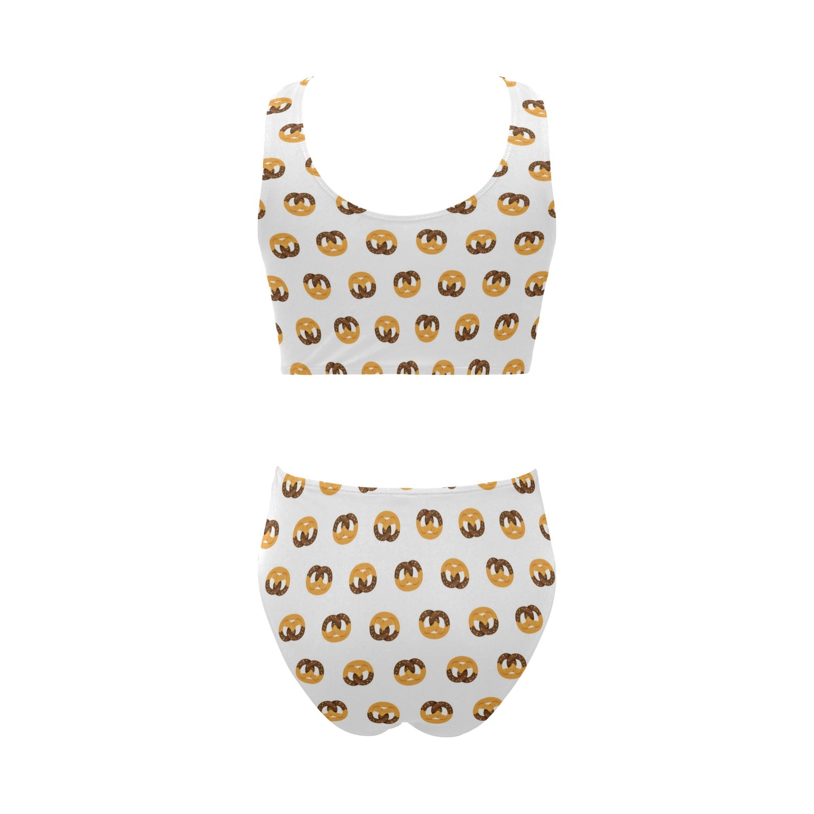 Pretzels Pattern Print Design 02 Chest Bowknot High Waisted Bikini Swimsuit