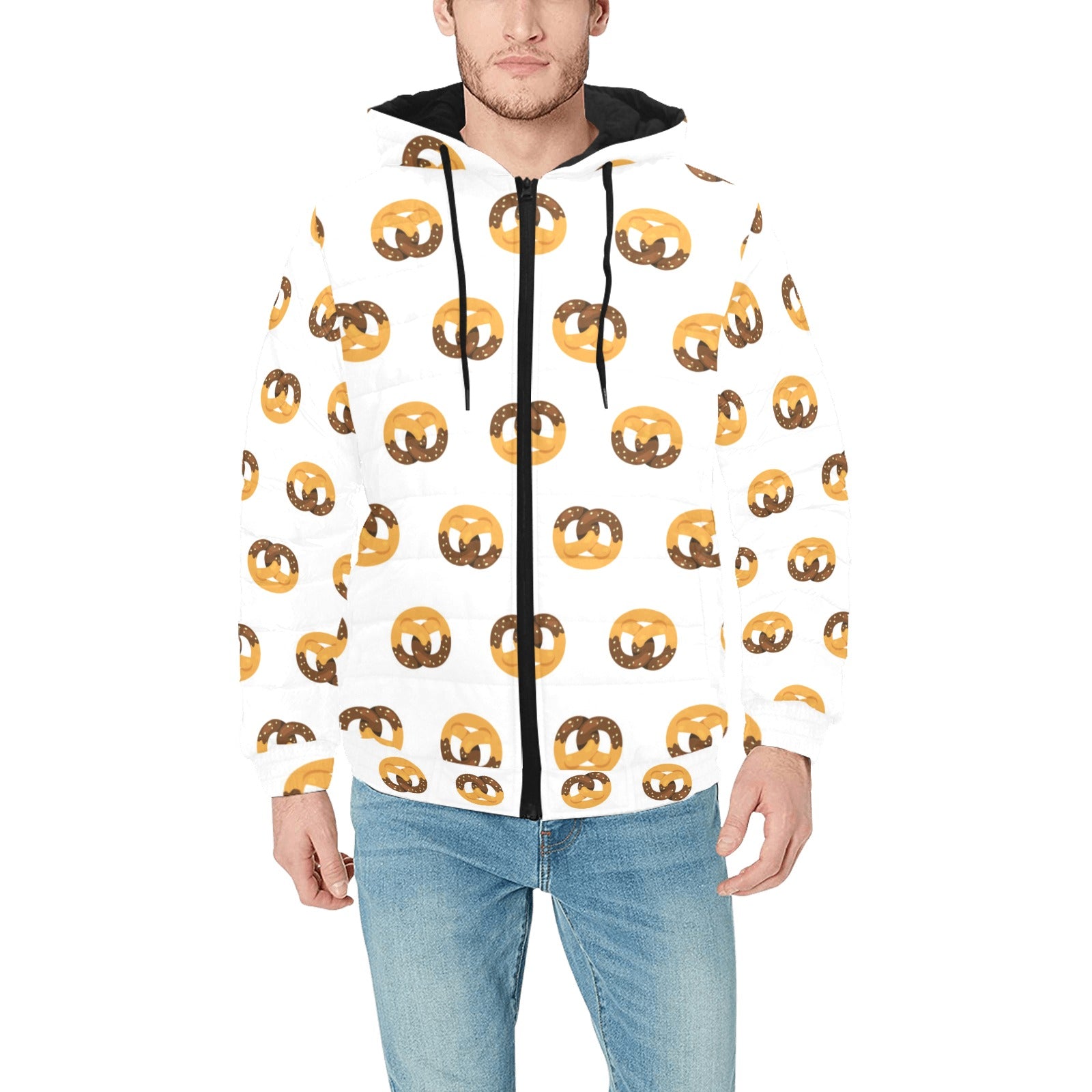 Pretzels Pattern Print Design 02 Men's Padded Hooded Jacket