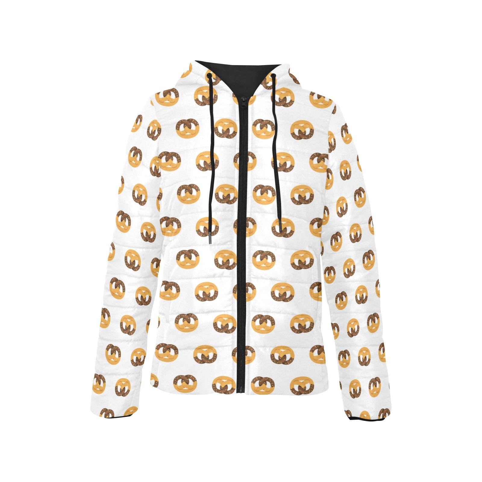 Pretzels Pattern Print Design 02 Women's Padded Hooded Jacket