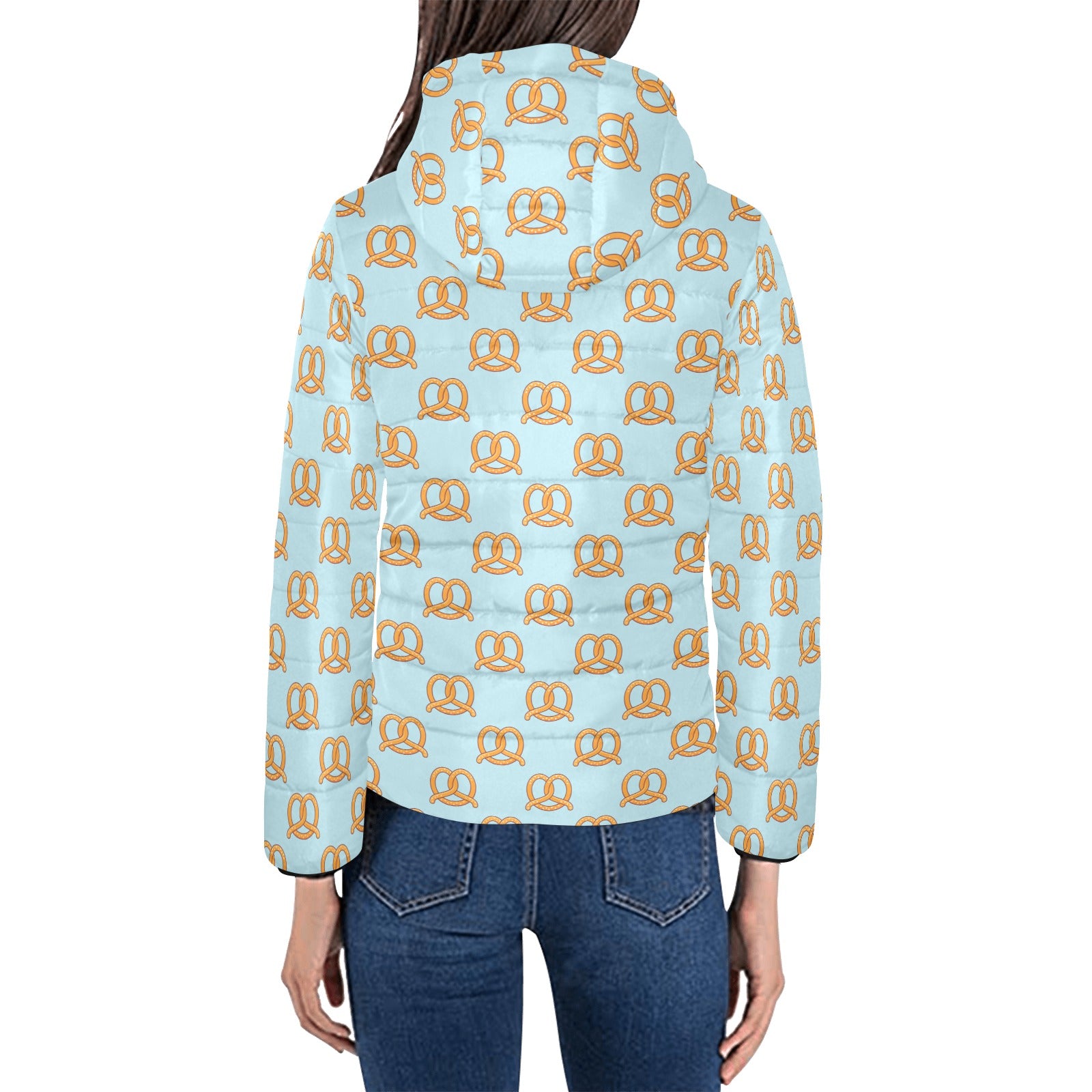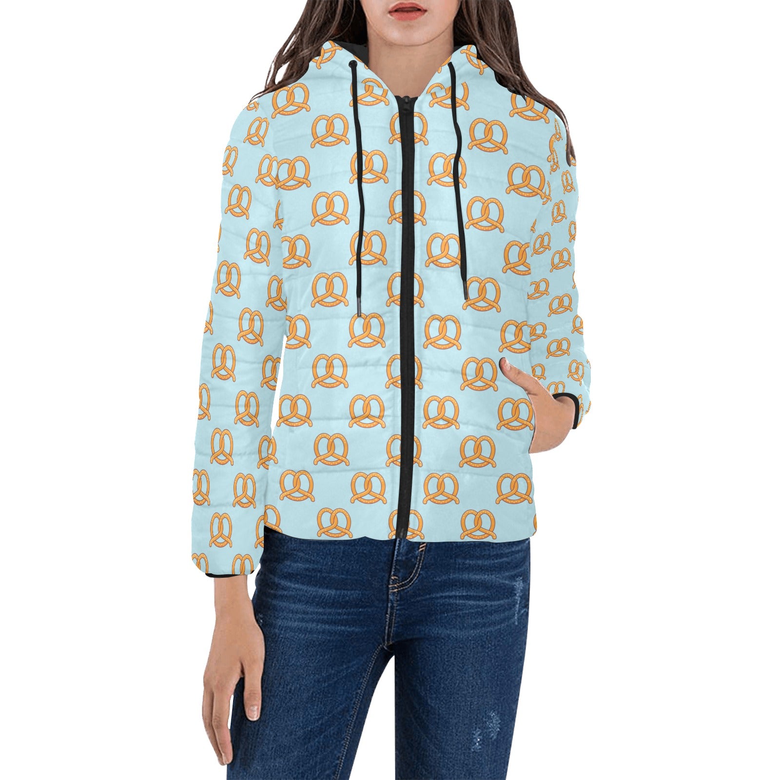 Pretzels Pattern Print Design 03 Women's Padded Hooded Jacket