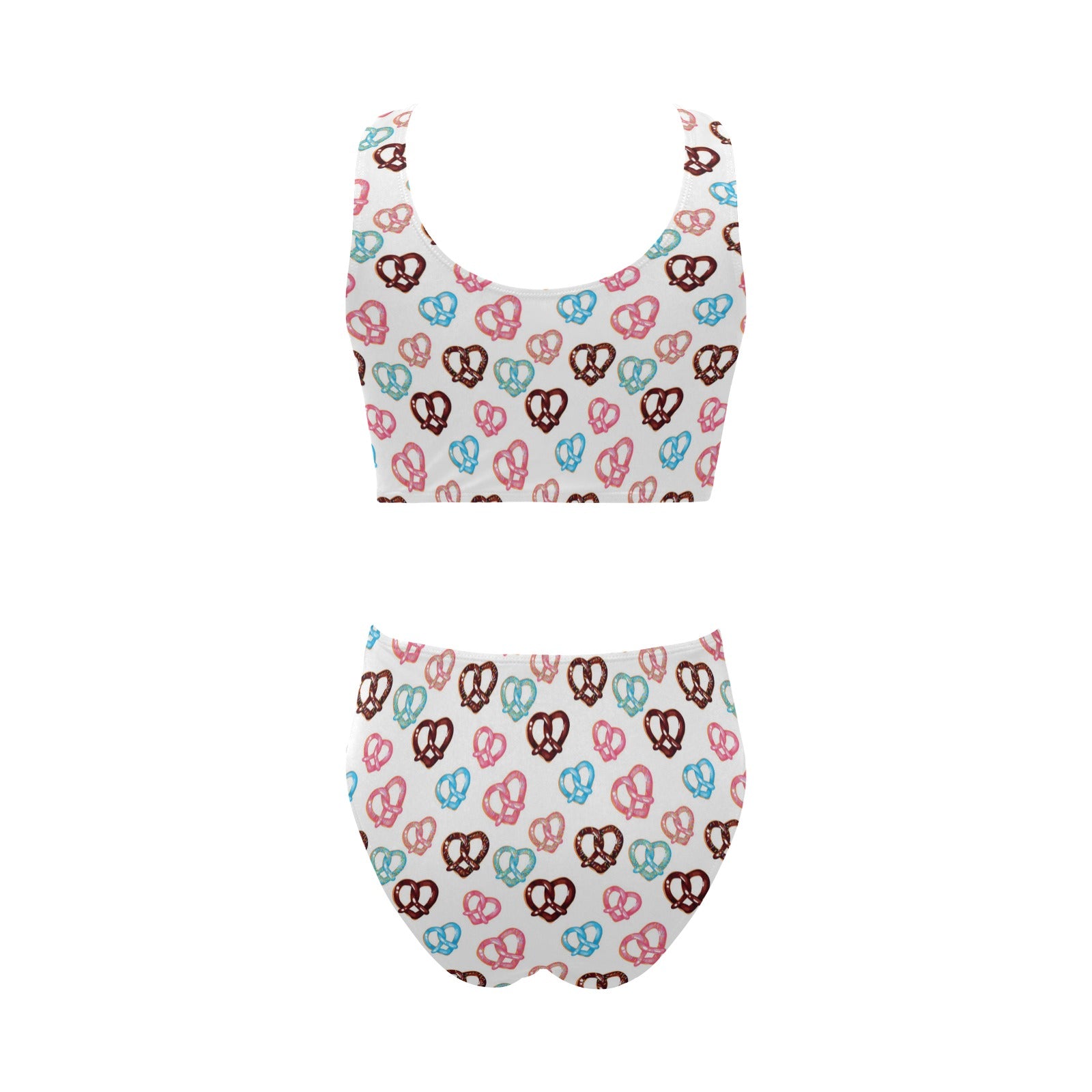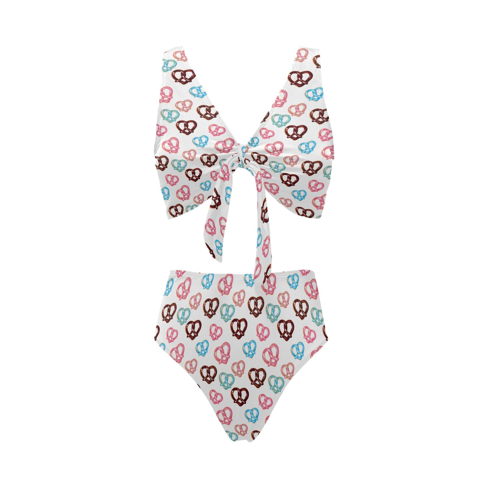 Pretzels Pattern Print Design 04 Chest Bowknot High Waisted Bikini Swimsuit