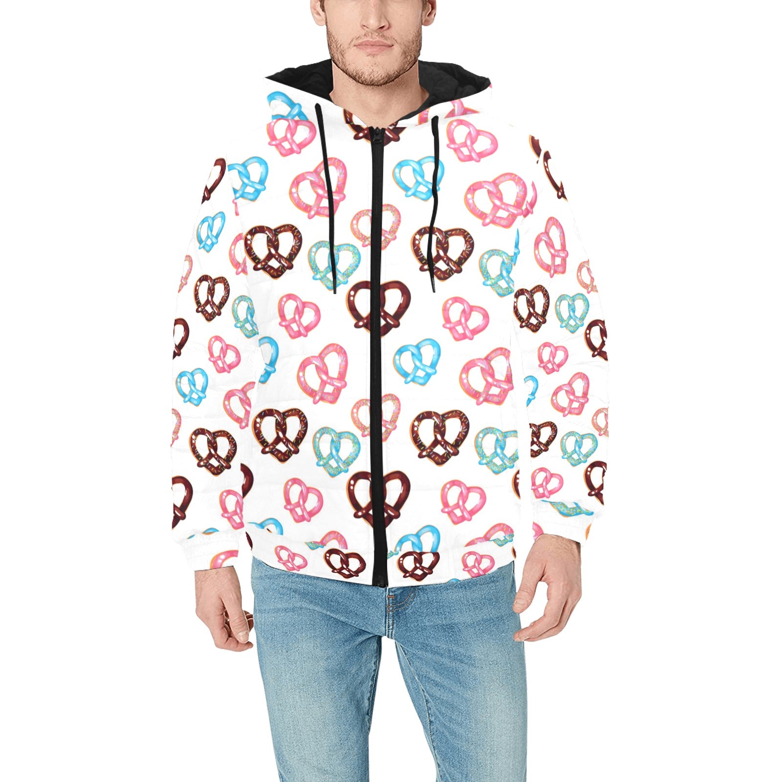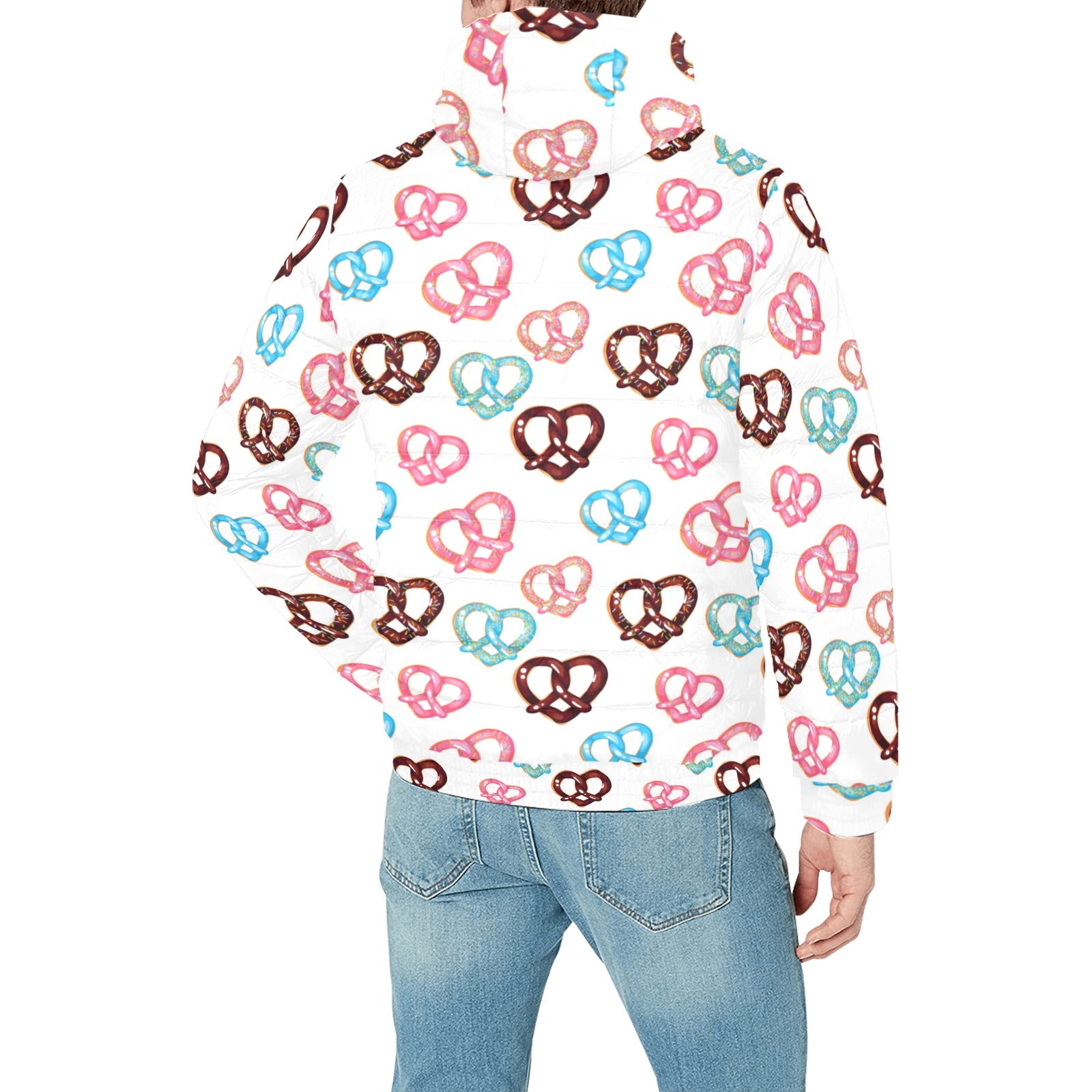 Pretzels Pattern Print Design 04 Men's Padded Hooded Jacket