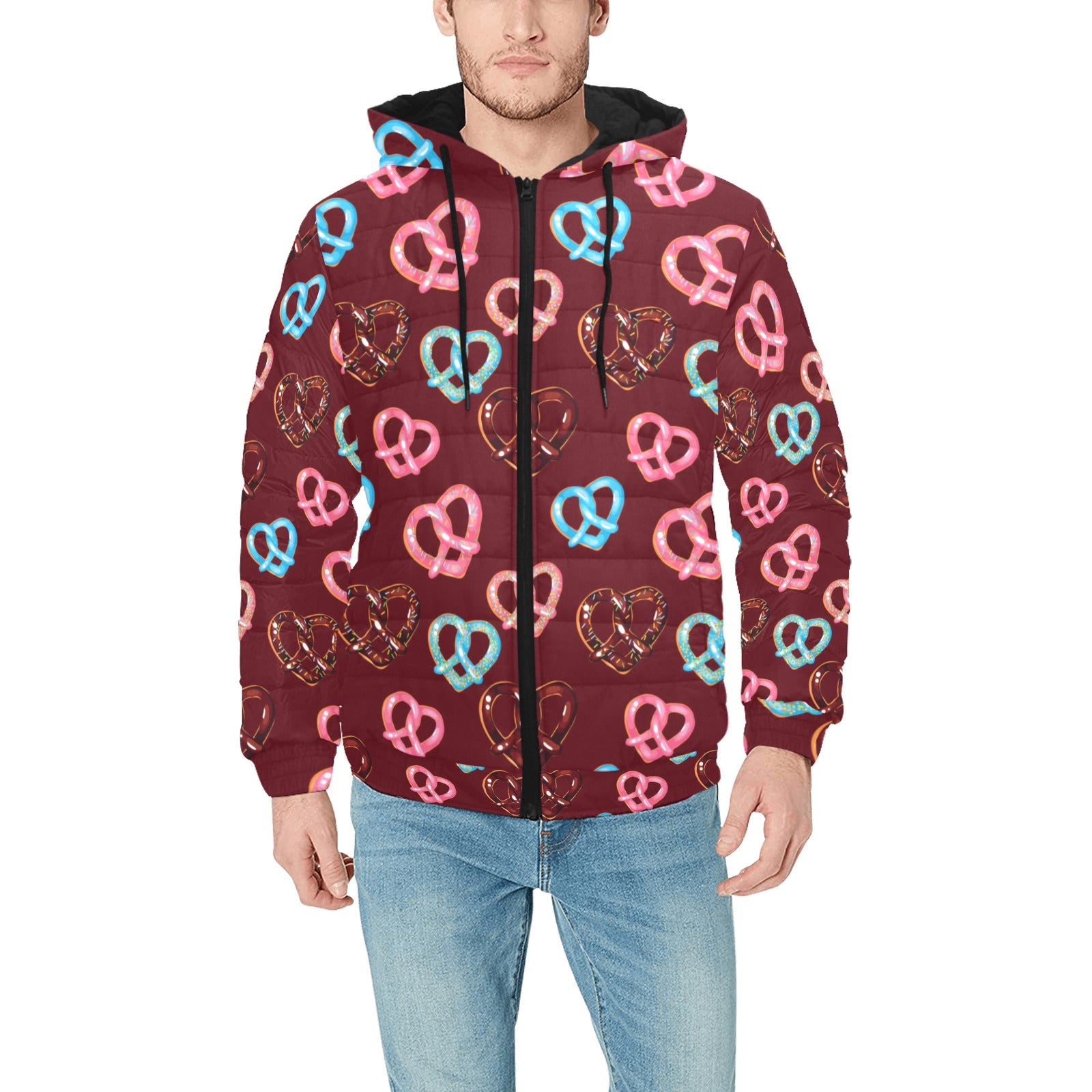 Pretzels Pattern Print Design 05 Men's Padded Hooded Jacket