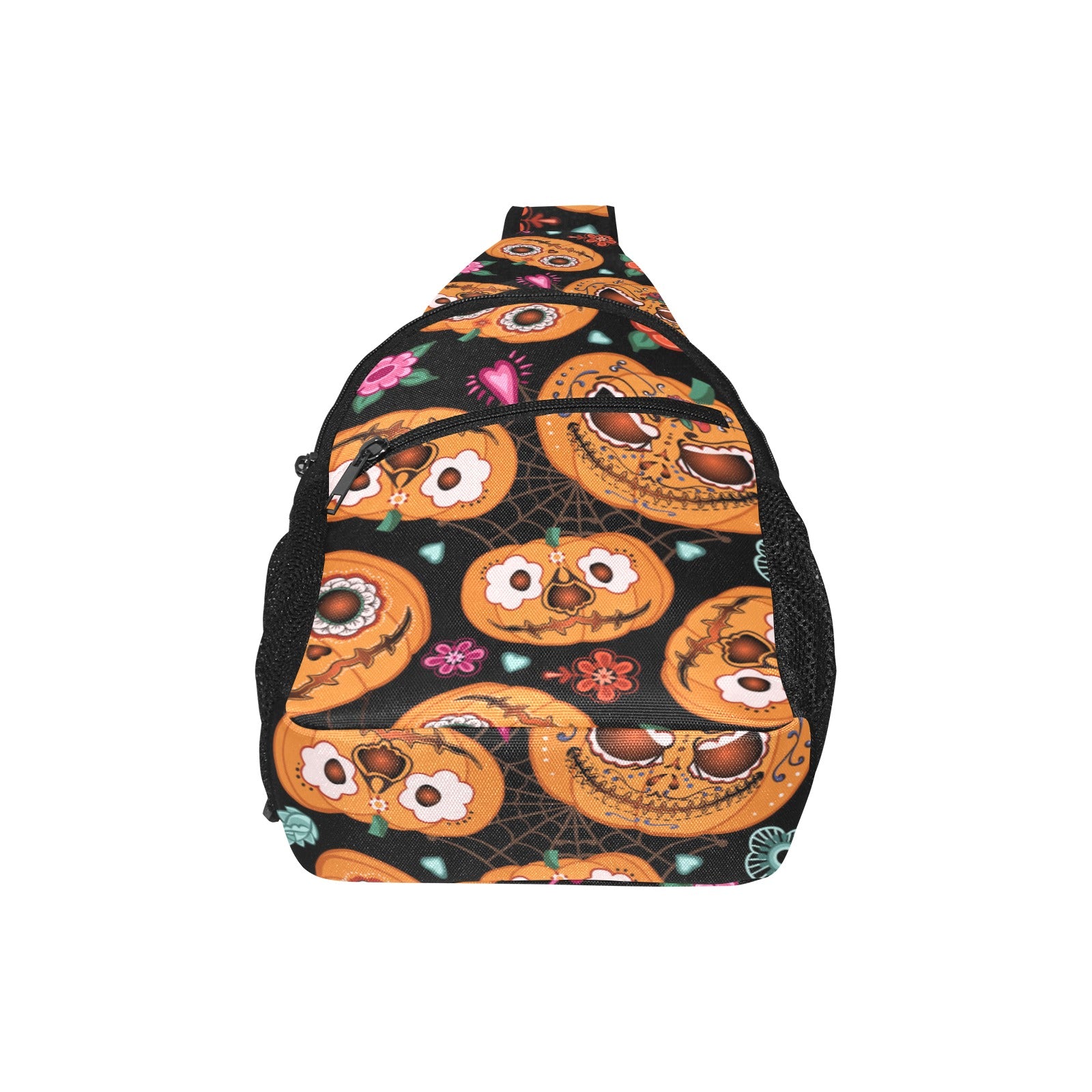 Pumpkin flowers spiderweb Halloween theme All Over Print Chest Bag