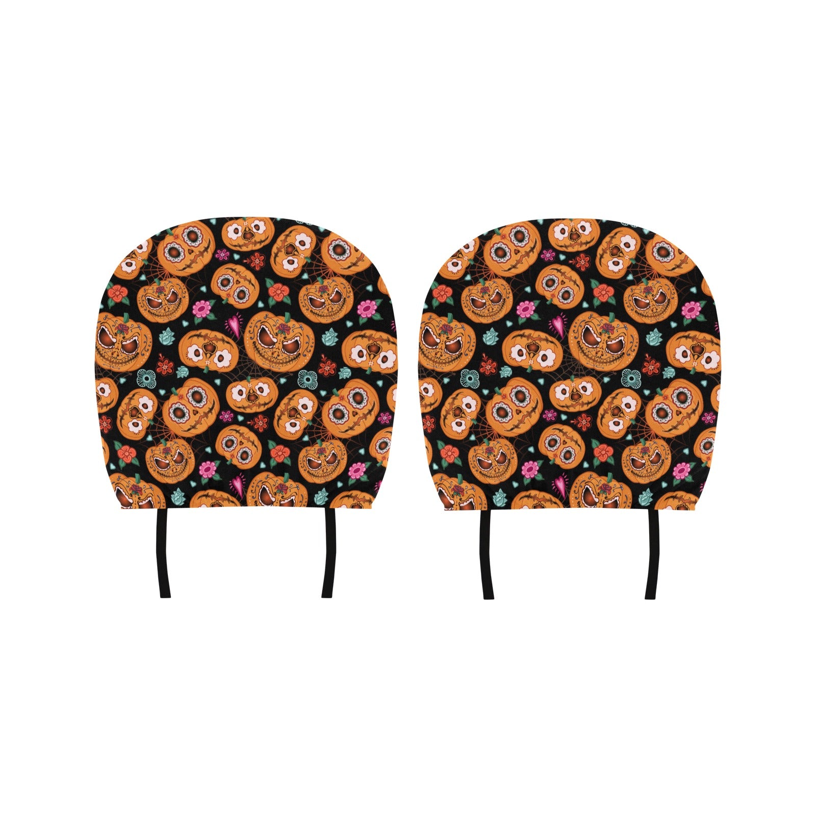 Pumpkin flowers spiderweb Halloween theme Car Headrest Cover