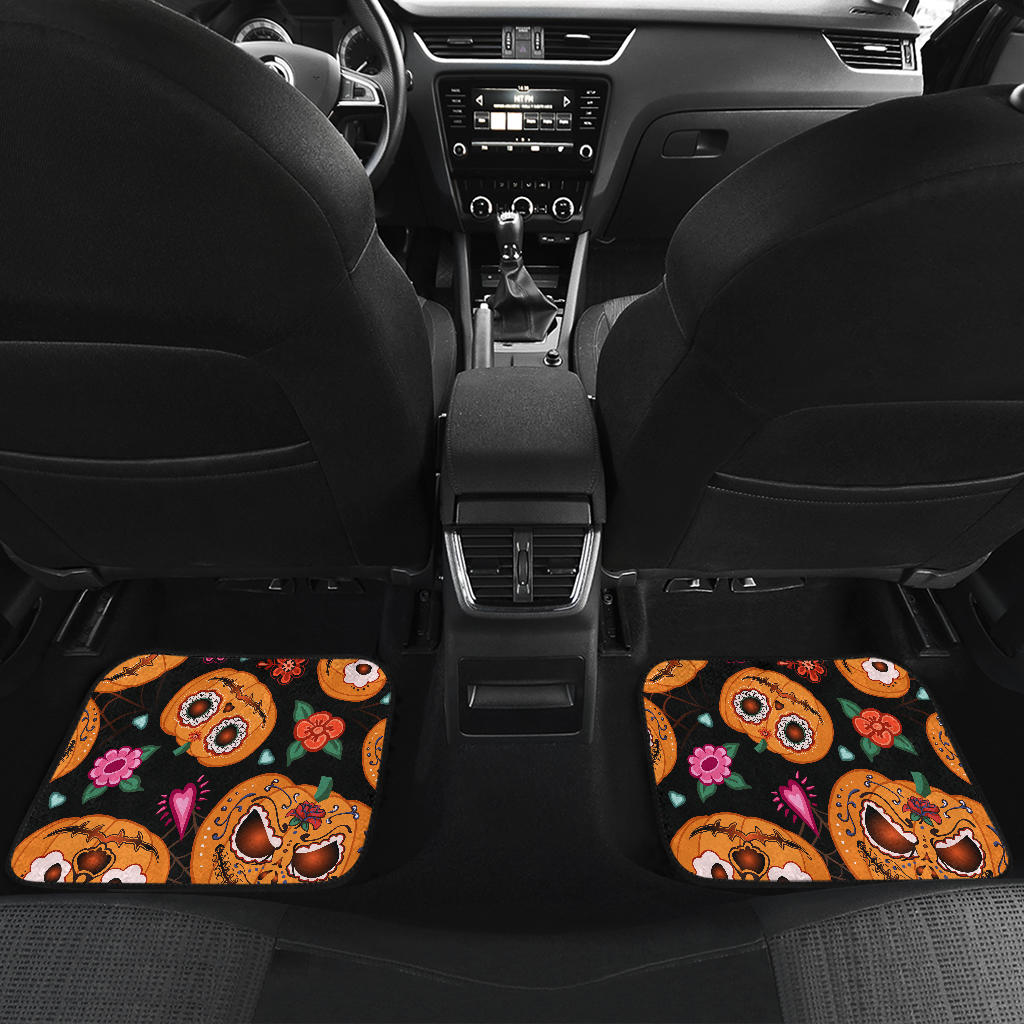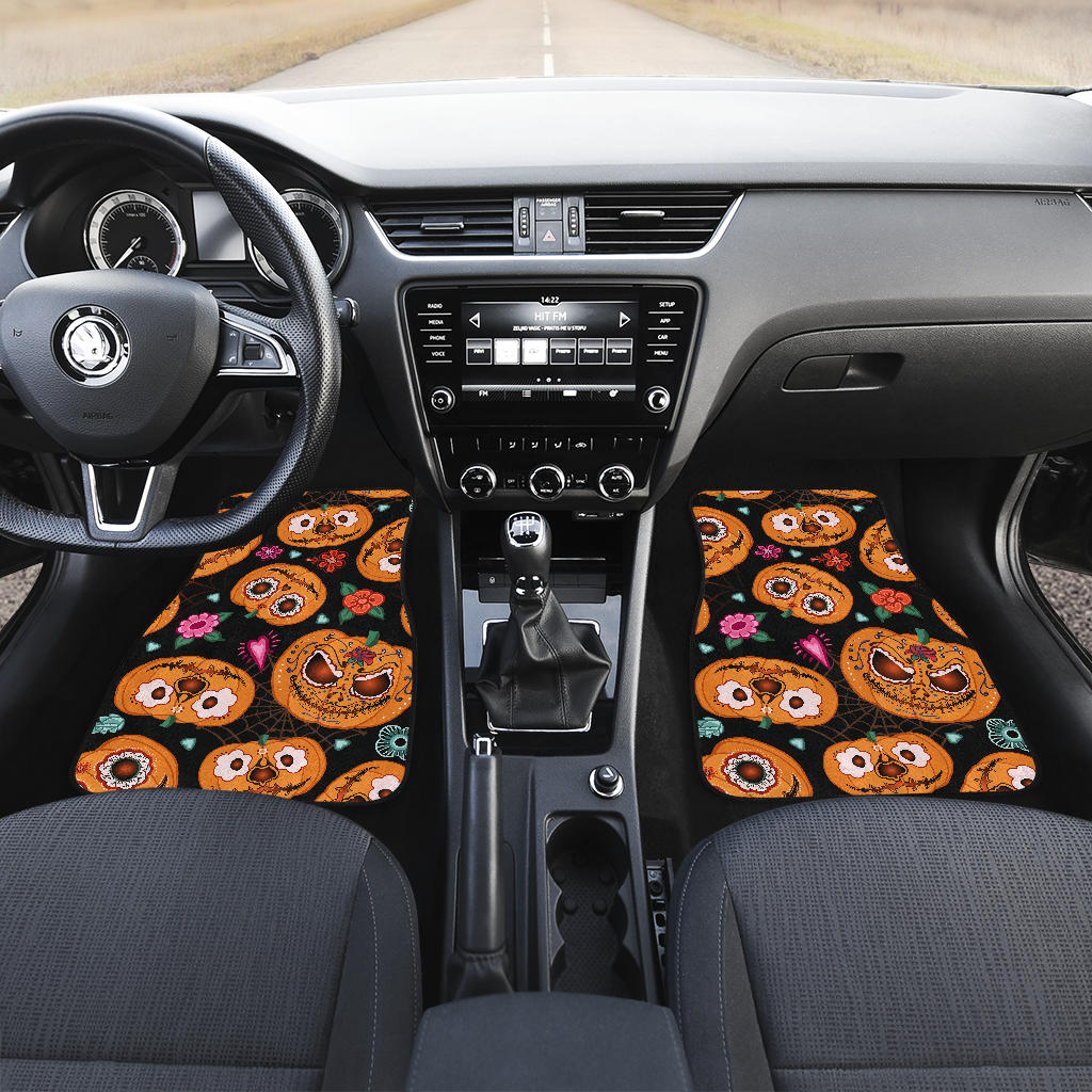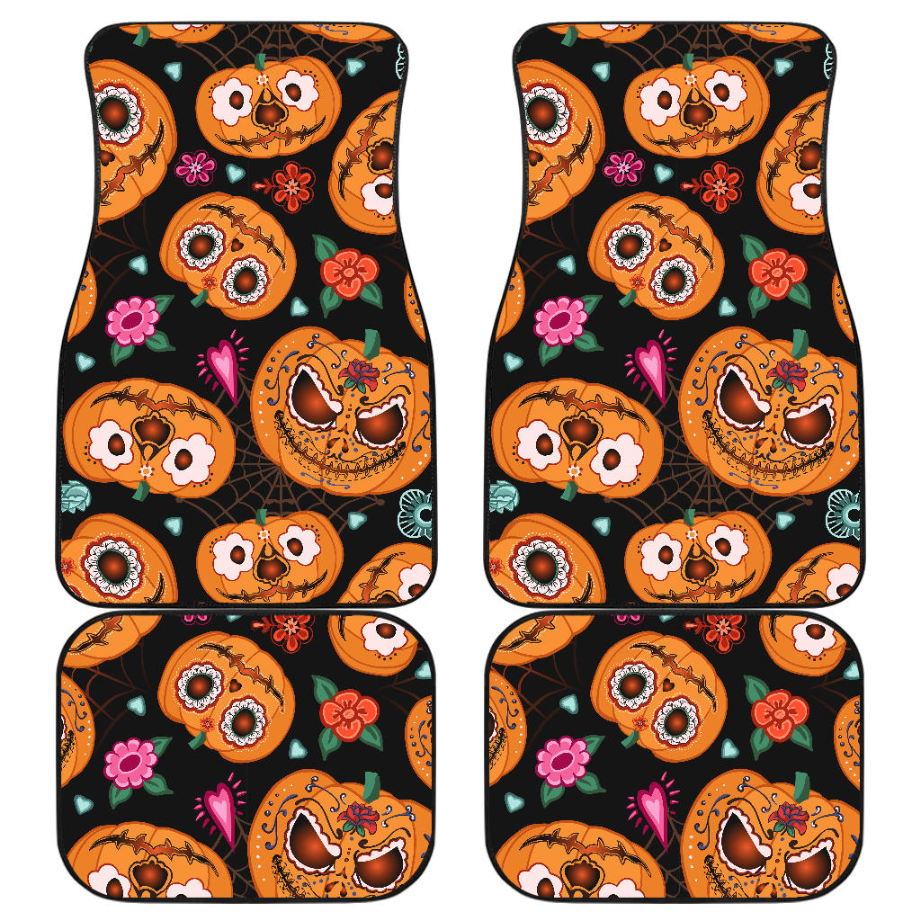 Pumpkin Flowers Spiderweb Halloween Theme Front And Back Car Mats