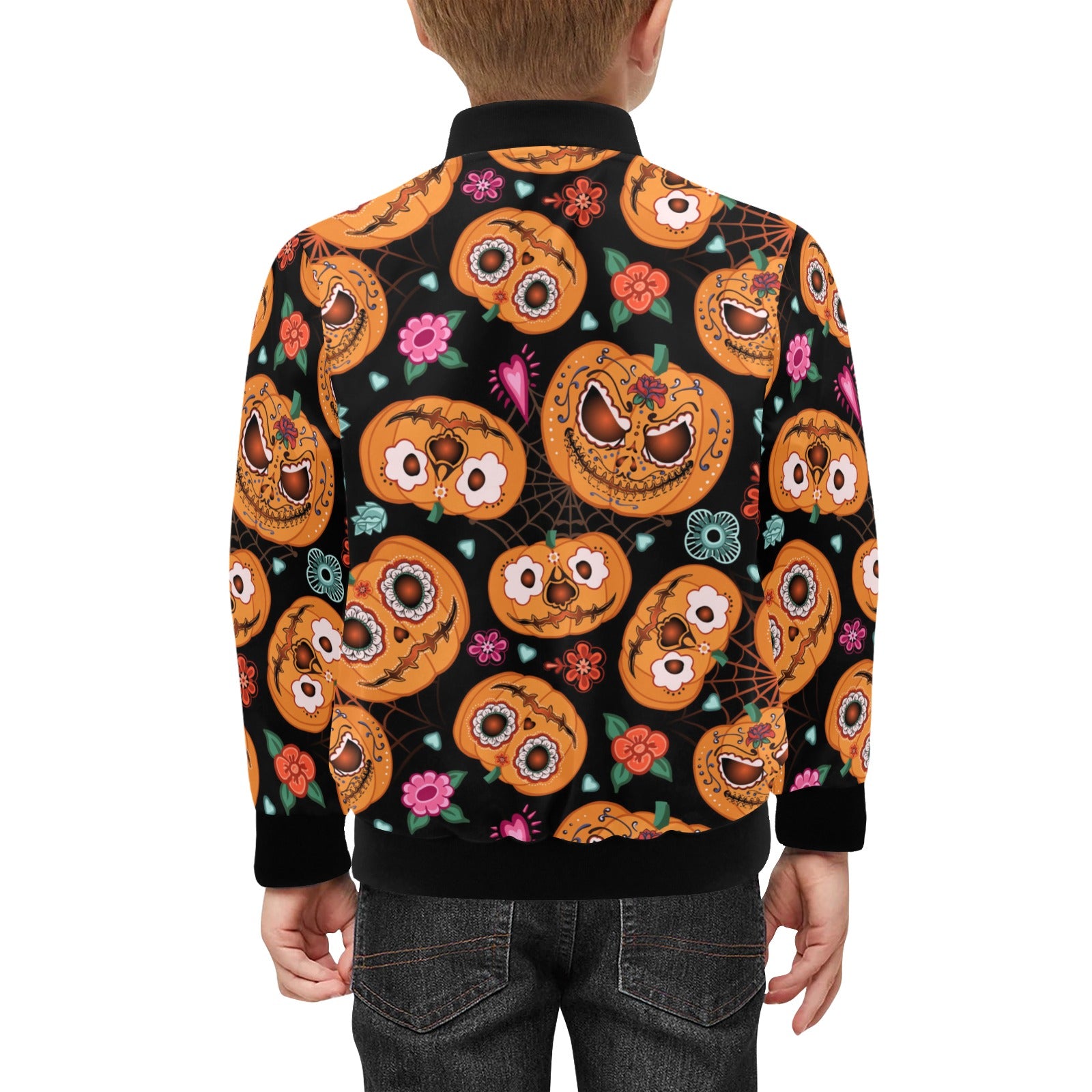 Pumpkin flowers spiderweb Halloween theme Kids' Boys' Girls' Bomber Jacket