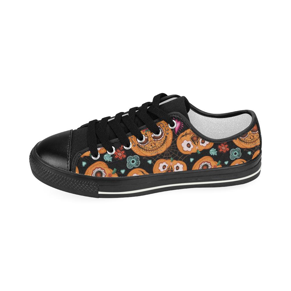 Pumpkin flowers spiderweb Halloween theme Kids' Boys' Girls' Low Top Canvas Shoes Black