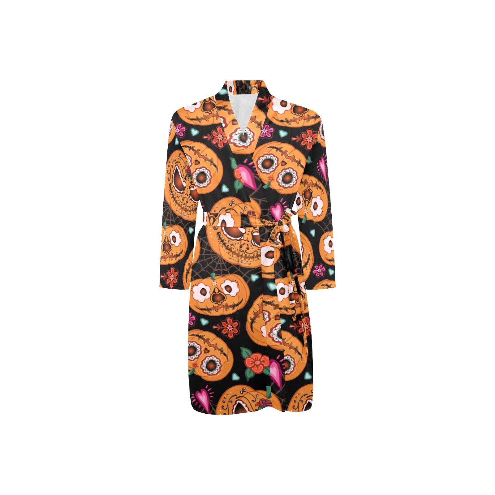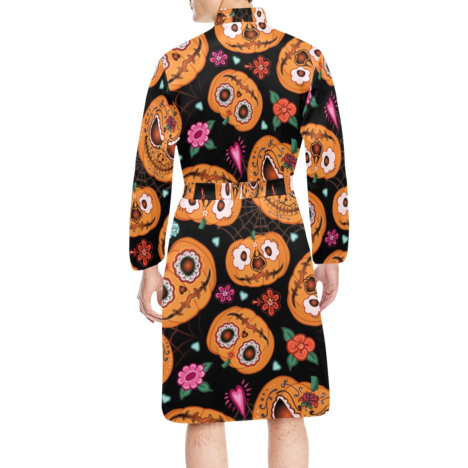 Pumpkin flowers spiderweb Halloween theme Men's Long Sleeve Belted Night Robe
