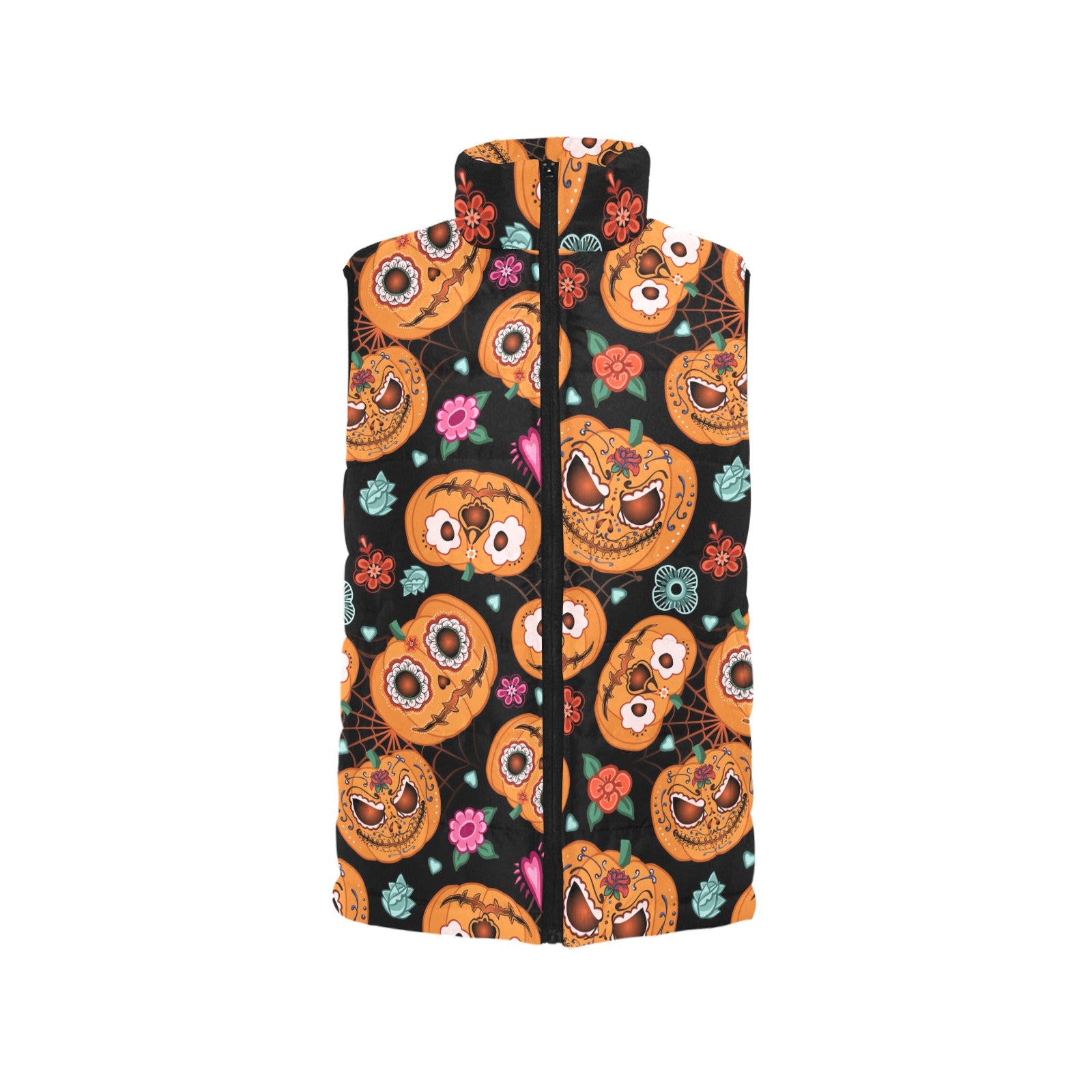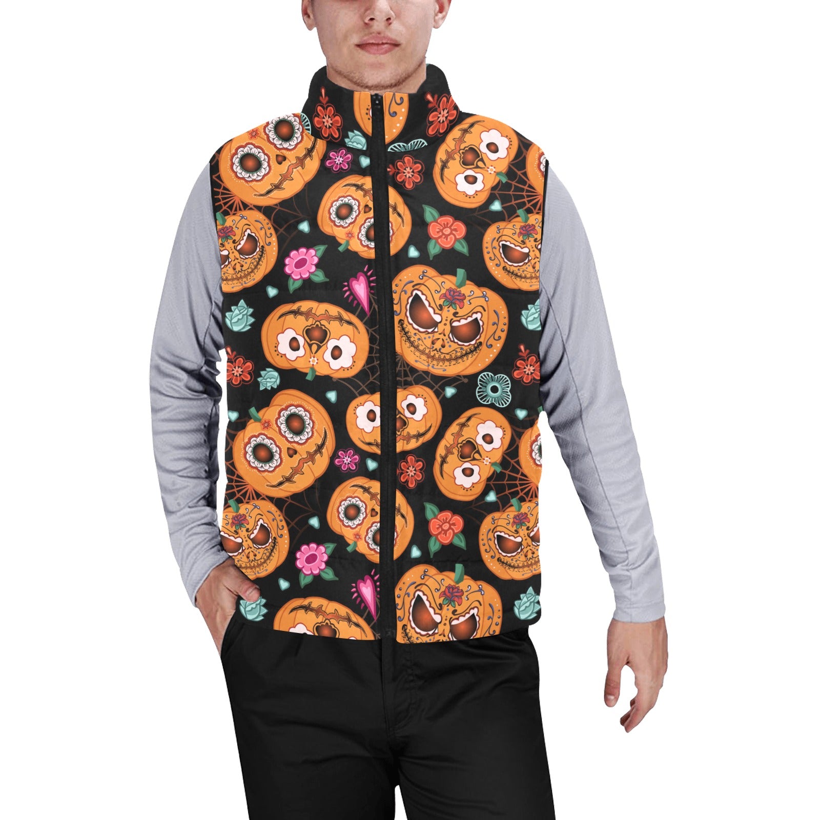 Pumpkin flowers spiderweb Halloween theme Men's Padded Vest