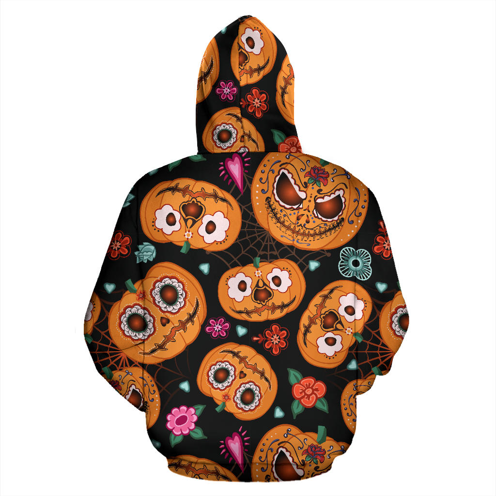 Pumpkin Flowers Spiderweb Halloween Theme Men Women Pullover Hoodie
