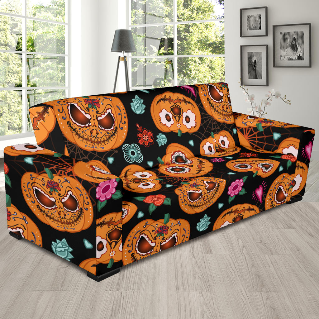 Pumpkin Flowers Spiderweb Halloween Theme Sofa Slipcover