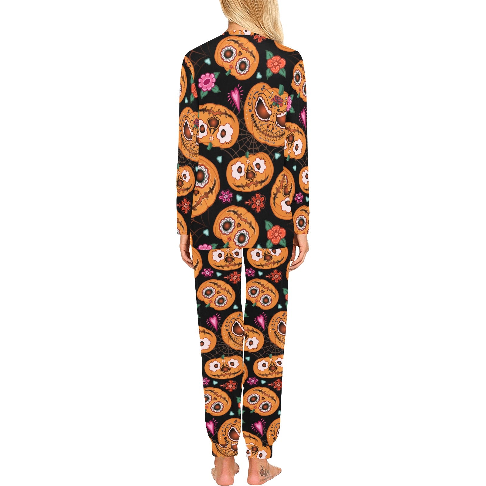 Pumpkin flowers spiderweb Halloween theme Women's All Over Print Pajama Set