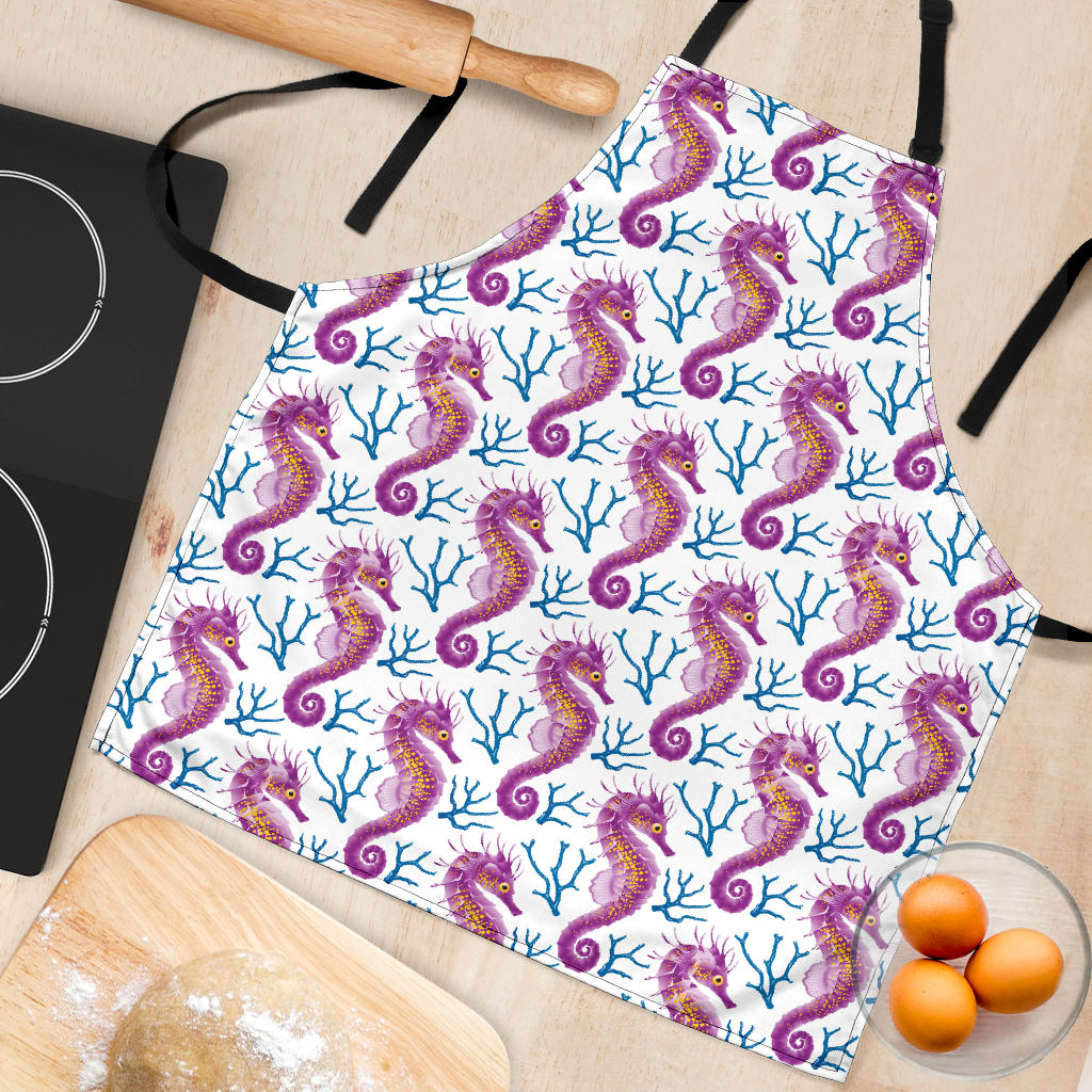 Purple Seahorse Blue Coral Pattern Adjustable Apron