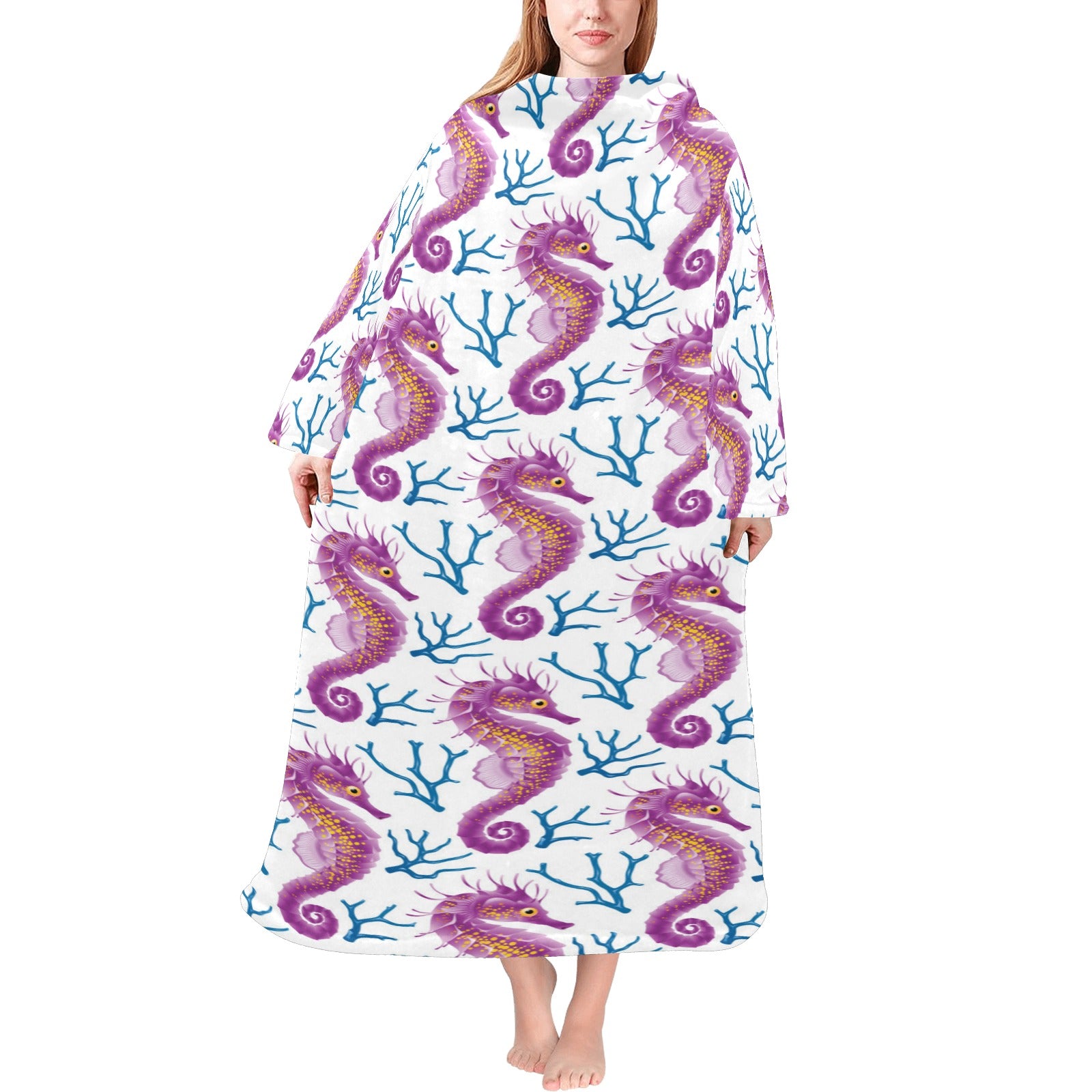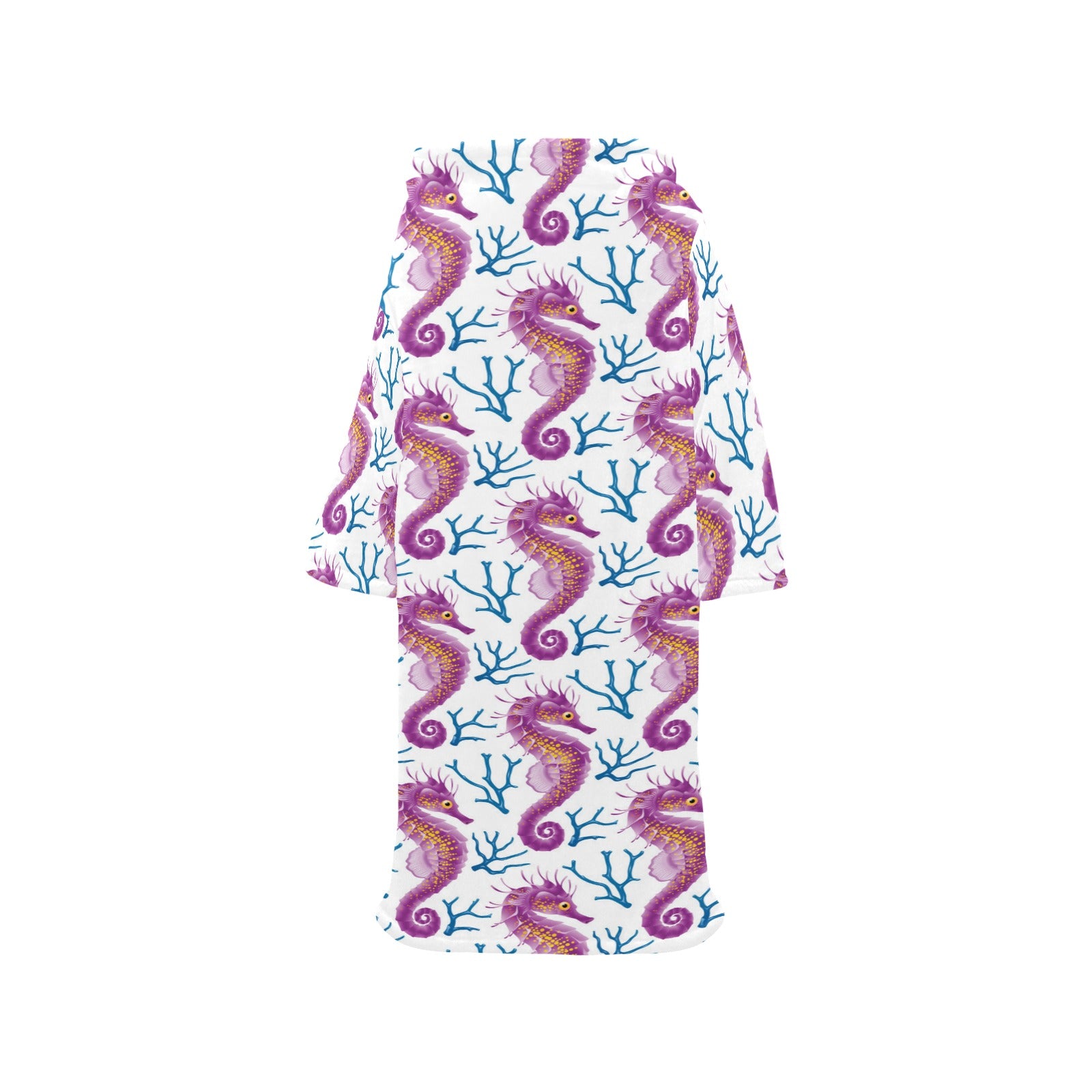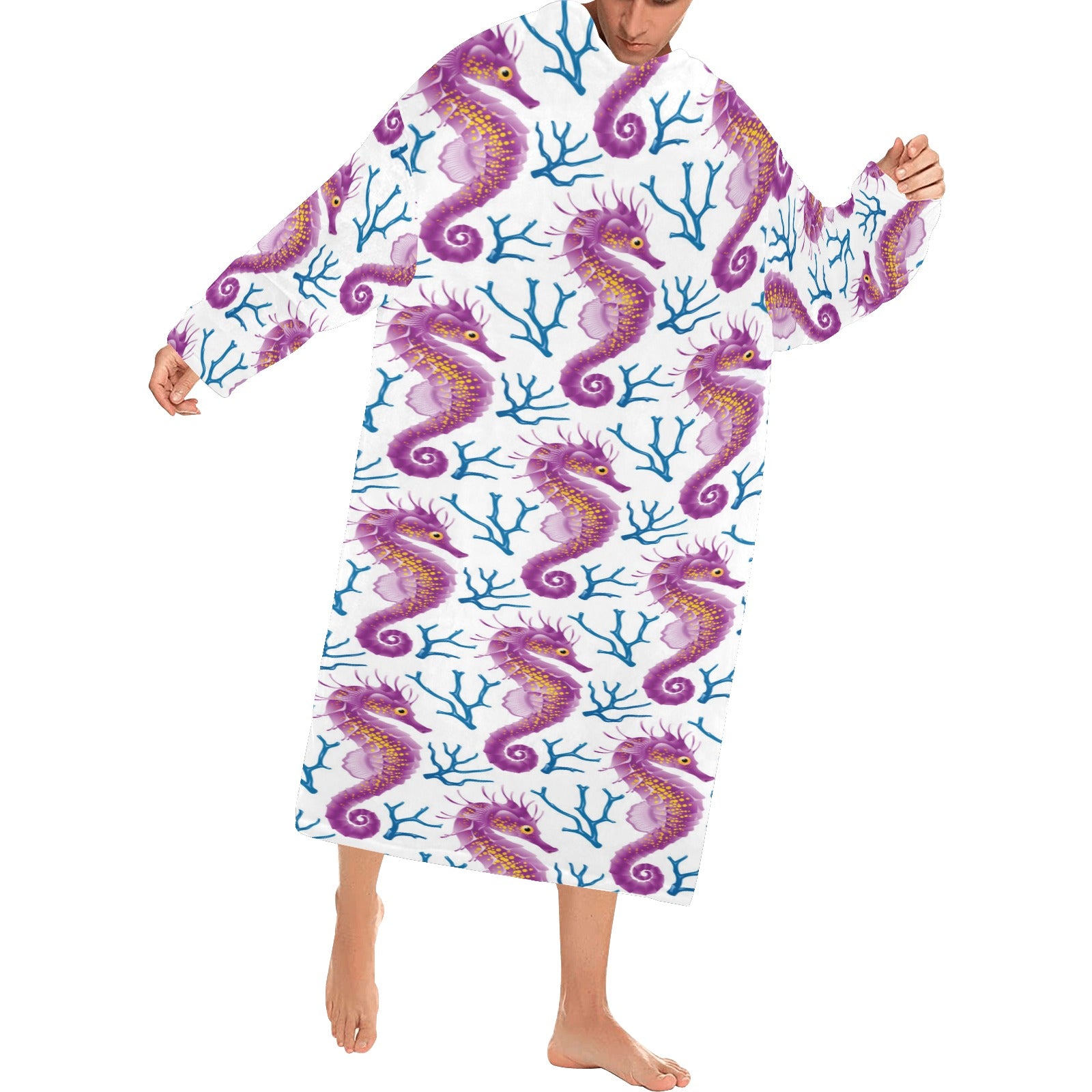 Purple seahorse blue coral pattern Blanket Robe with Sleeves