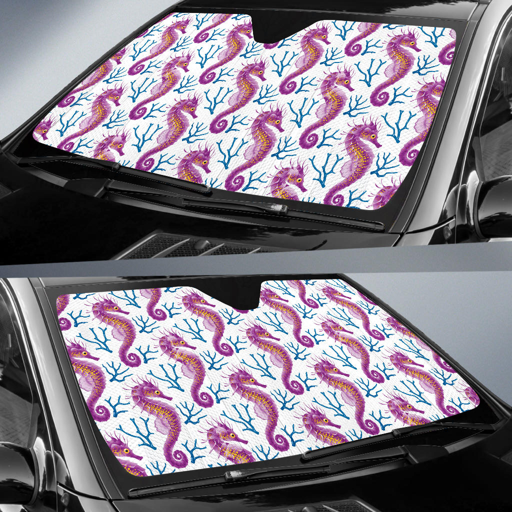 Purple Seahorse Blue Coral Pattern Car Sun Shade