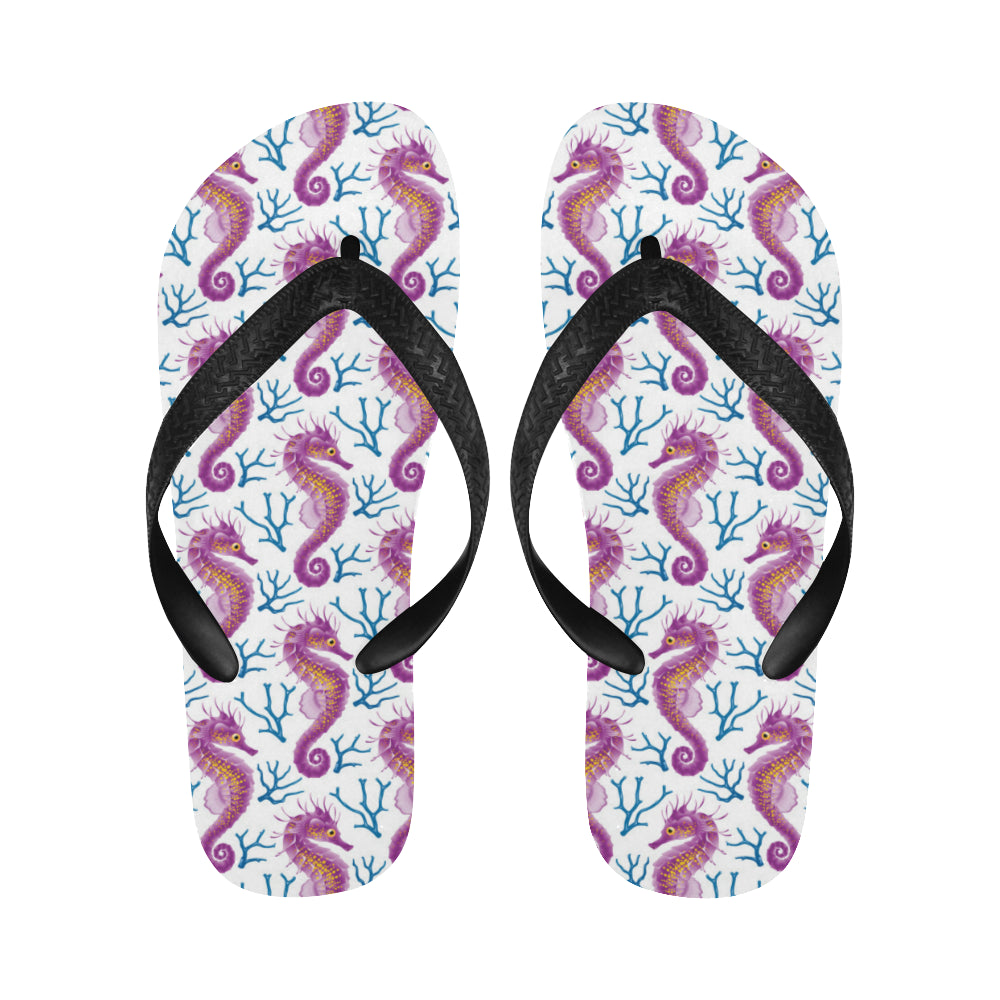 Purple seahorse blue coral pattern Unisex Flip Flops