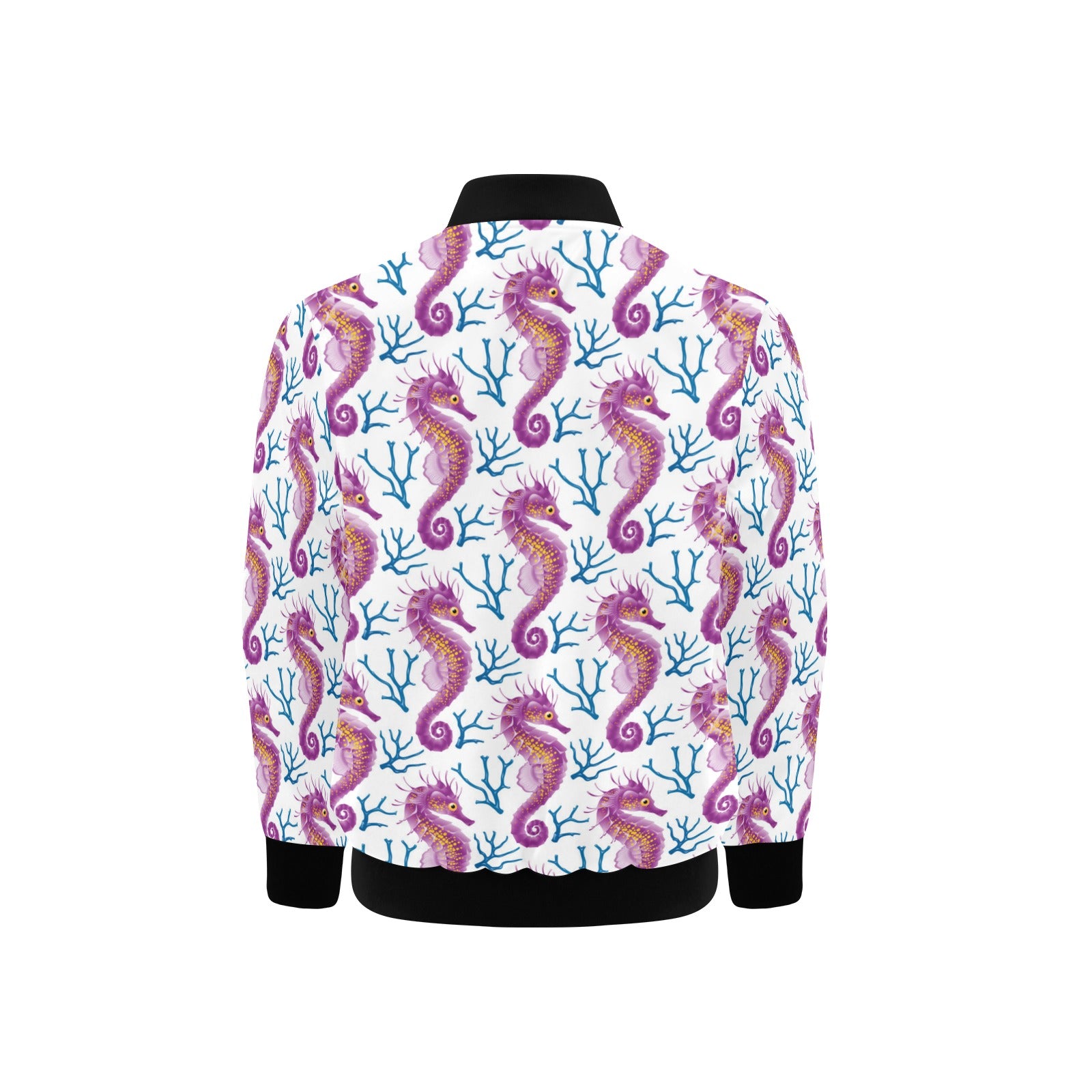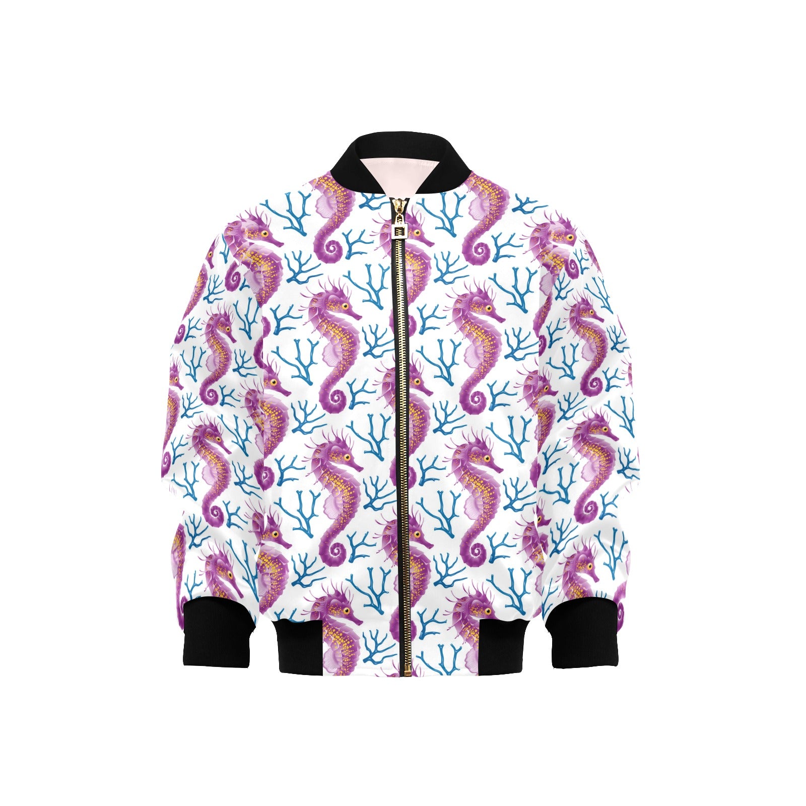 Purple seahorse blue coral pattern Kids' Boys' Girls' Bomber Jacket