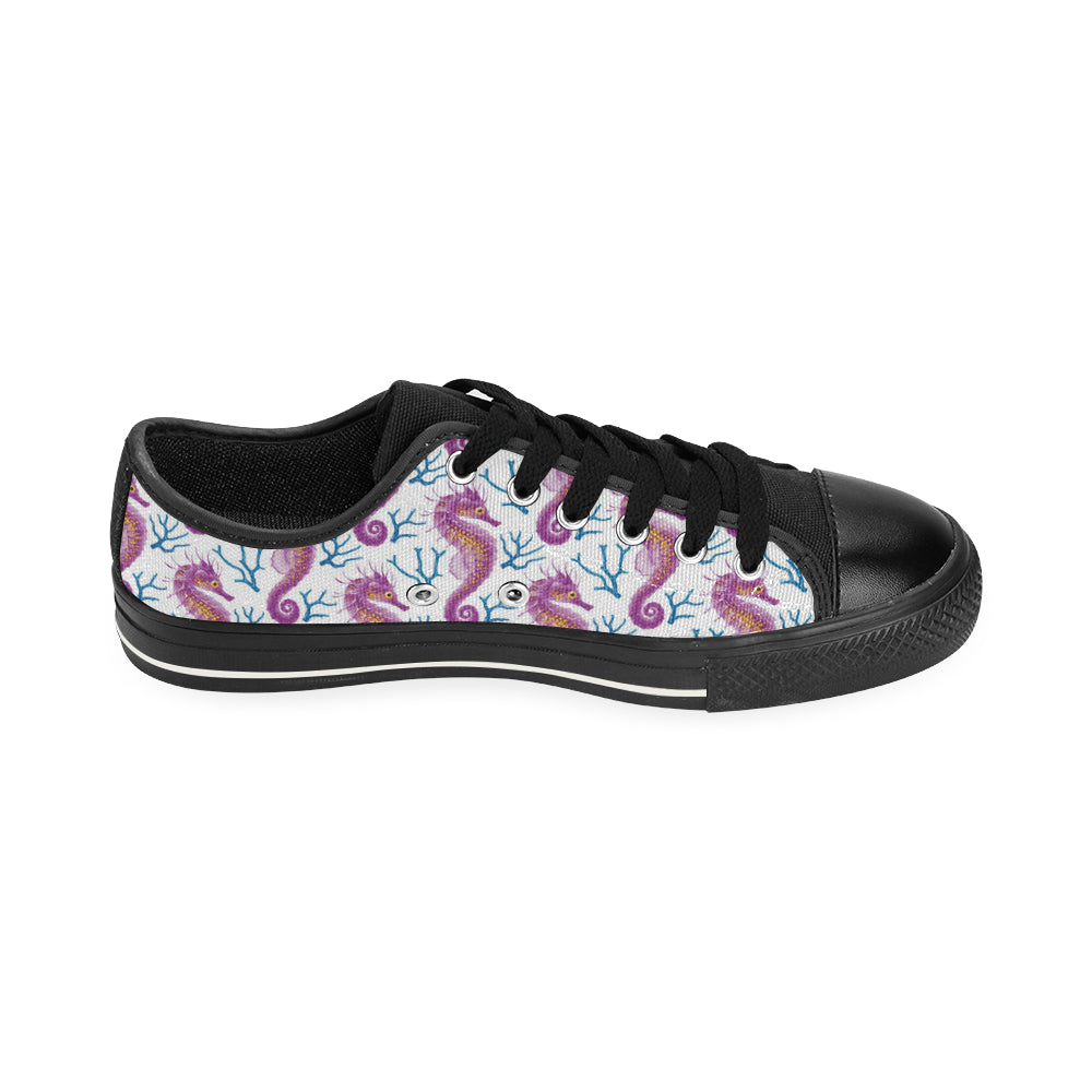 Purple seahorse blue coral pattern Men's Low Top Canvas Shoes Black