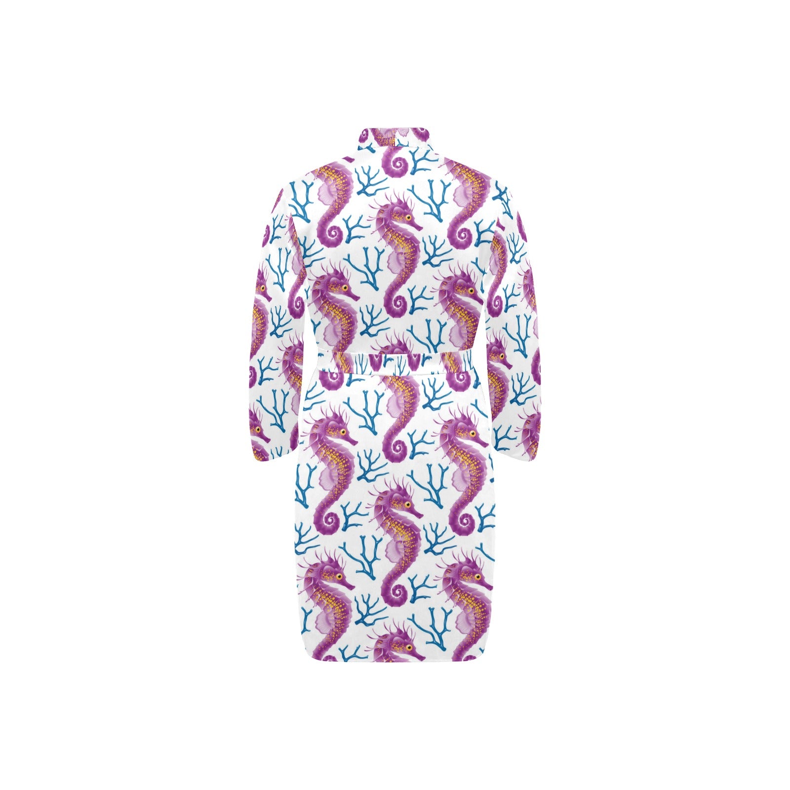 Purple seahorse blue coral pattern Men's Long Sleeve Belted Night Robe