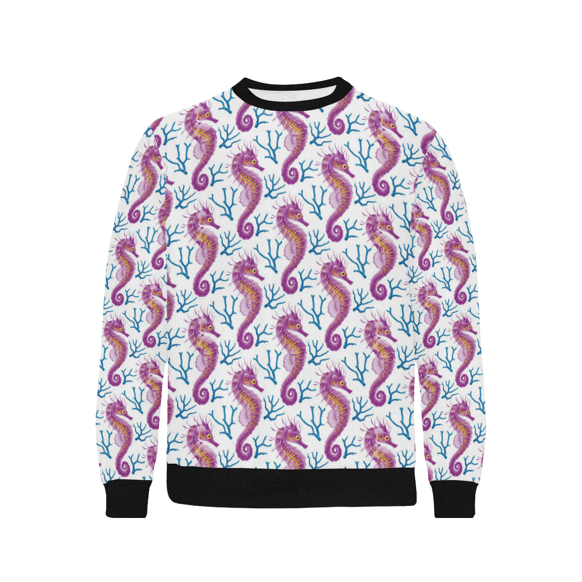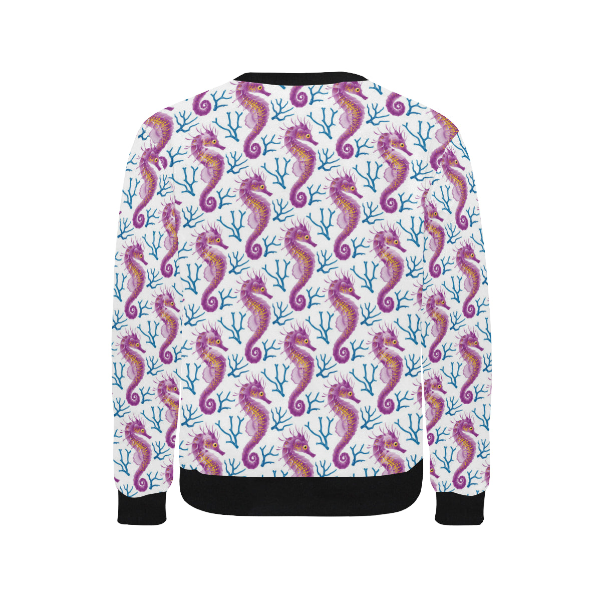 Purple seahorse blue coral pattern Men's Crew Neck Sweatshirt is a uniqued design and limited item. It made to order, hand printed, and sewn with love in our factory.