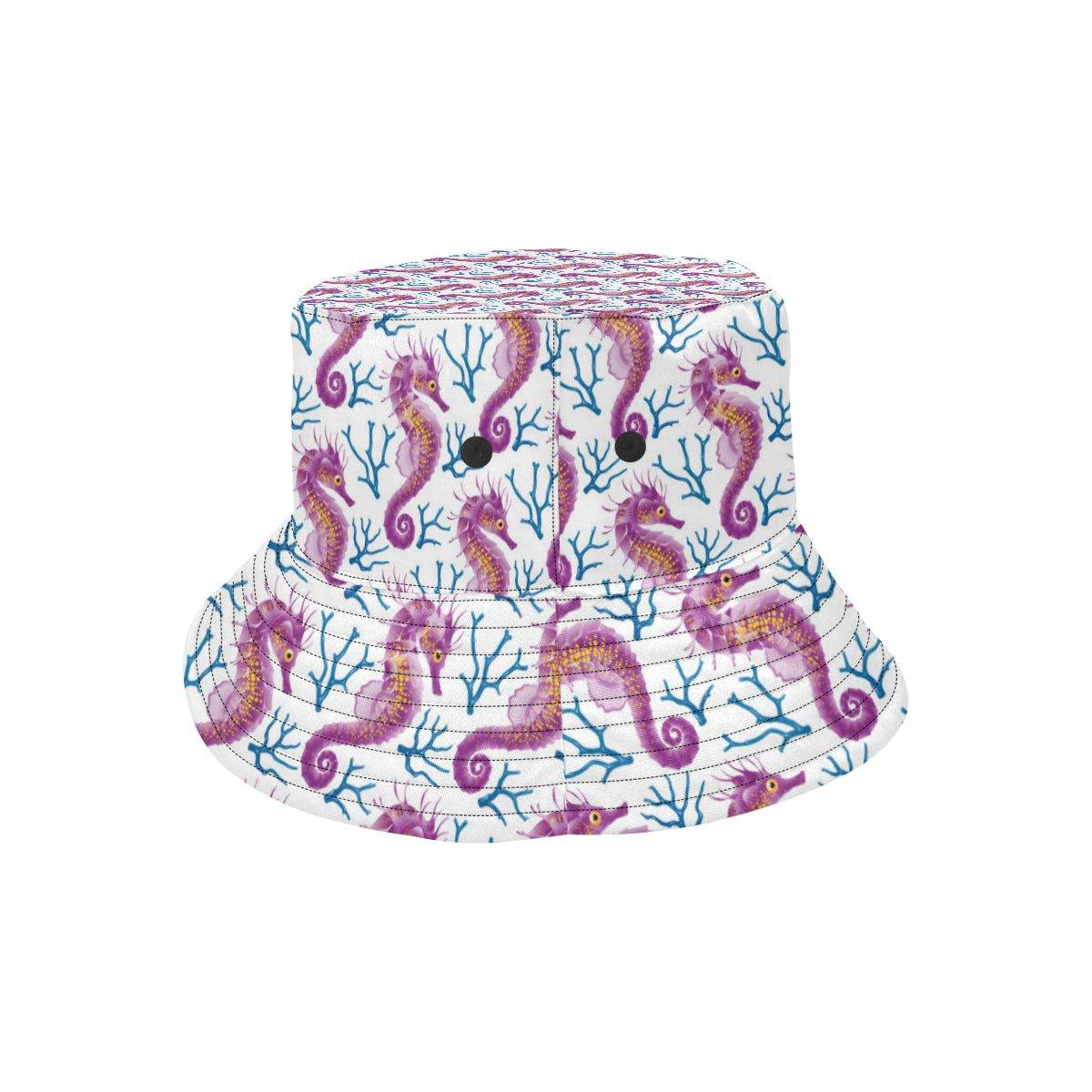 Purple seahorse blue coral pattern Unisex Bucket Hat is a uniqued design and limited item. It made to order, hand printed, and sewn with love in our factory.
