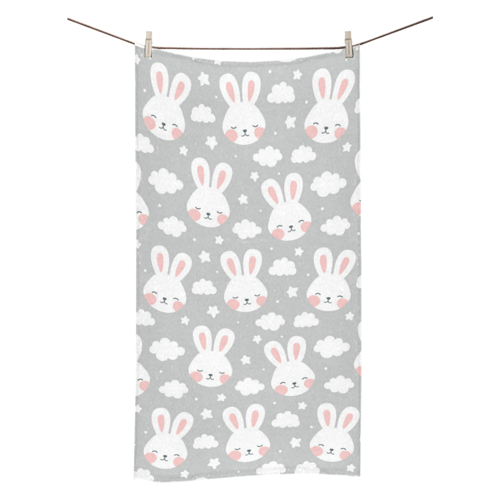 Rabbit cloud Pattern Bath Towel 30"x56" is a uniqued design and limited item. It made to order, hand printed, and sewn with love in our factory.