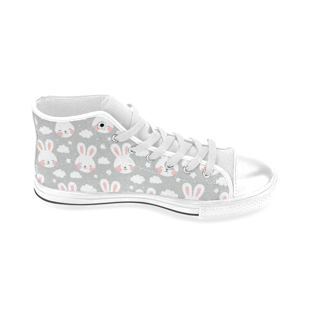 Rabbit cloud Pattern Men's High Top Canvas Shoes White