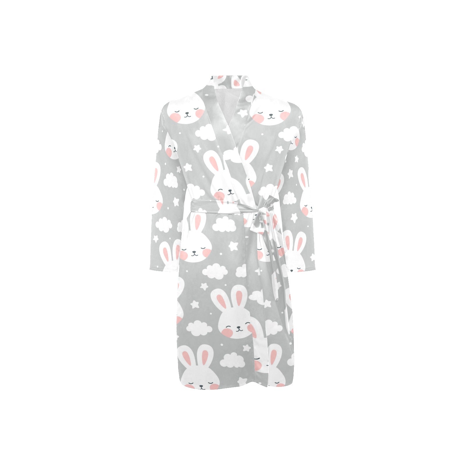 Rabbit cloud Pattern Men's Long Sleeve Belted Night Robe