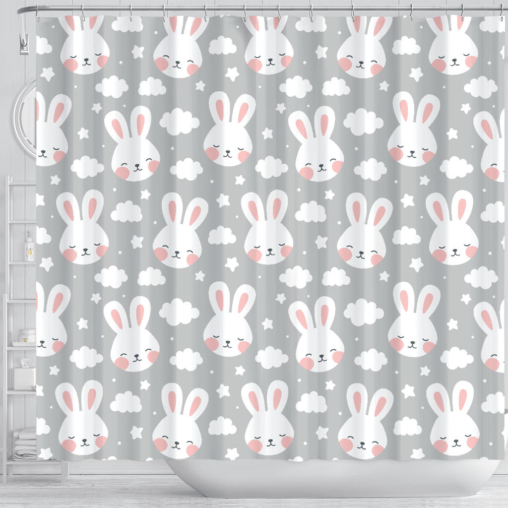 Rabbit cloud Pattern Shower Curtain is a uniqued design and limited item. It made to order, hand printed, and sewn with love in our factory.