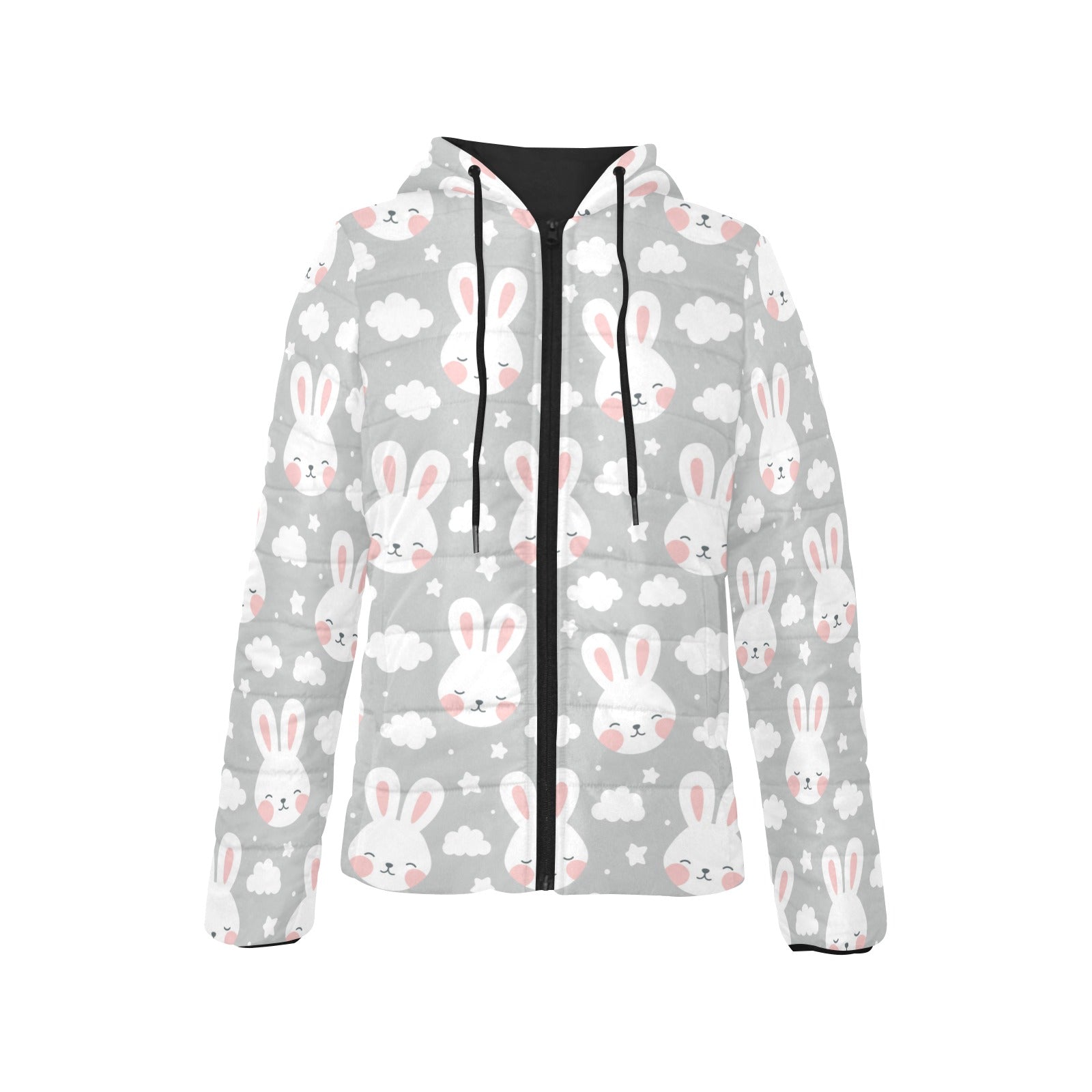 Rabbit cloud Pattern Women's Padded Hooded Jacket