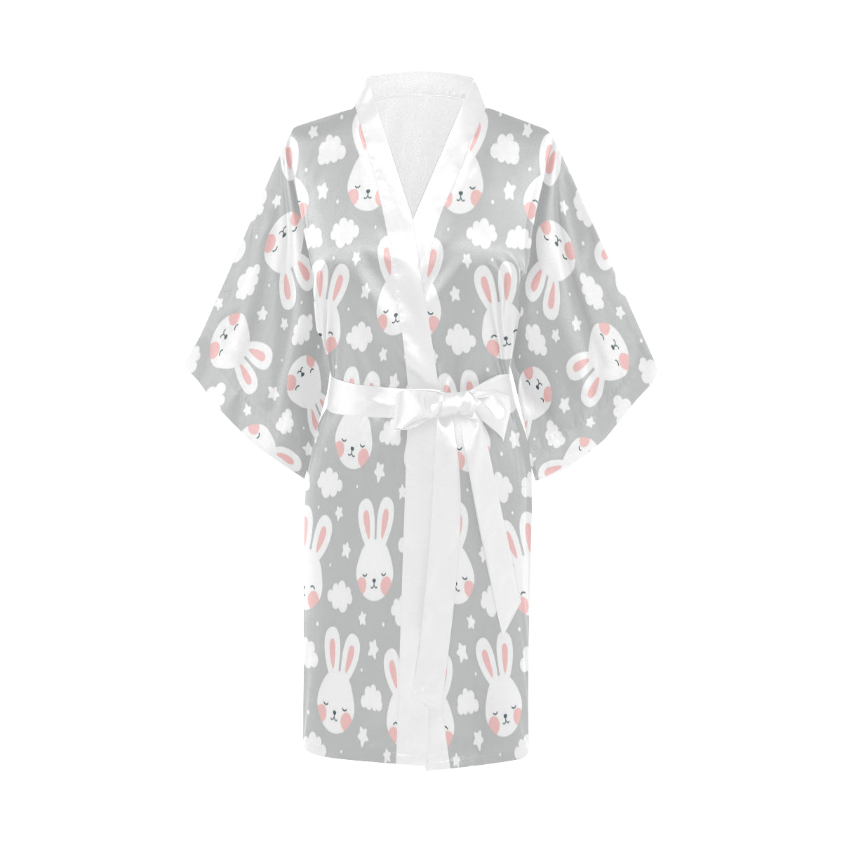 Rabbit cloud Pattern Women's Short Kimono Robe