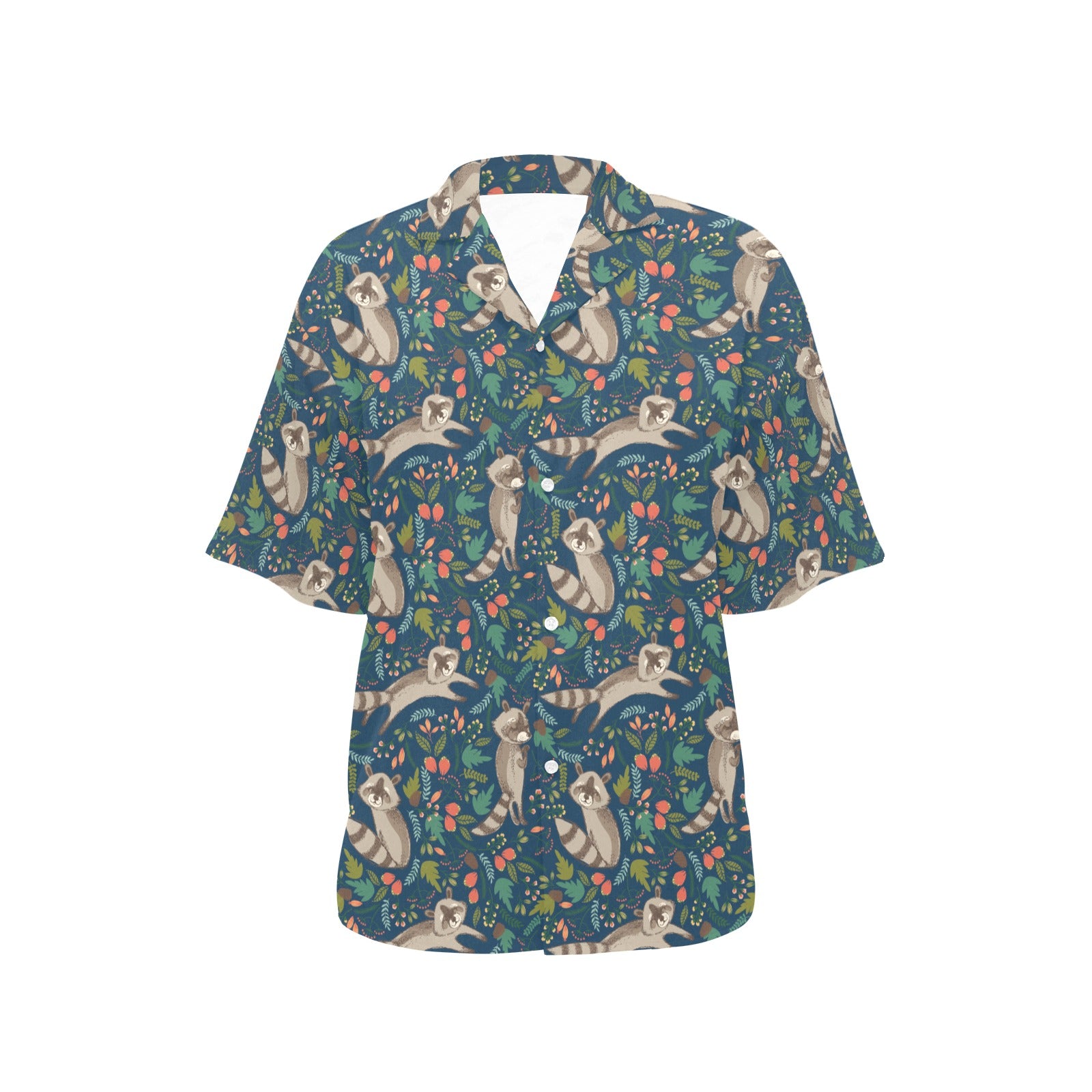 Raccoon tropical leaves pattern Women's All Over Print Hawaiian Shirt