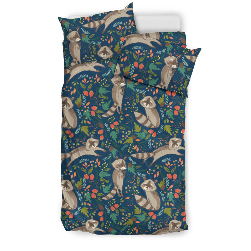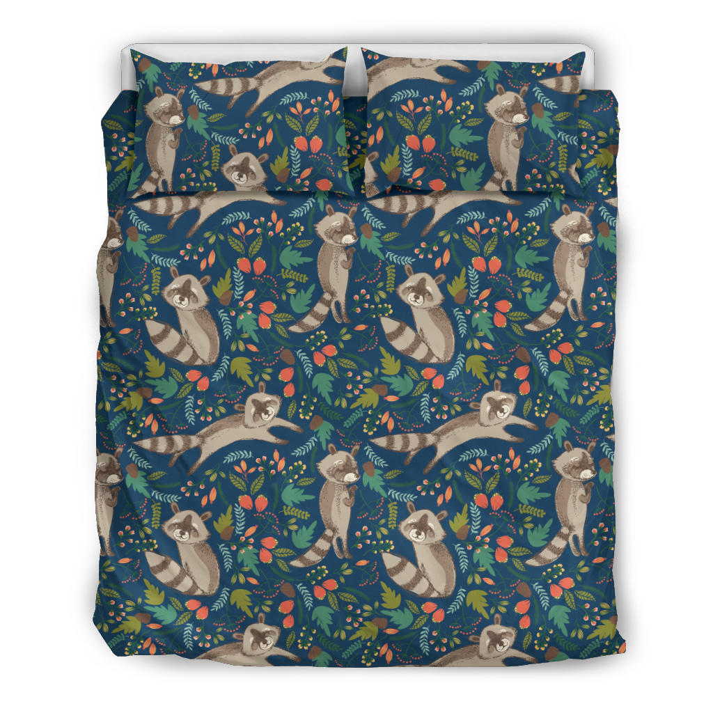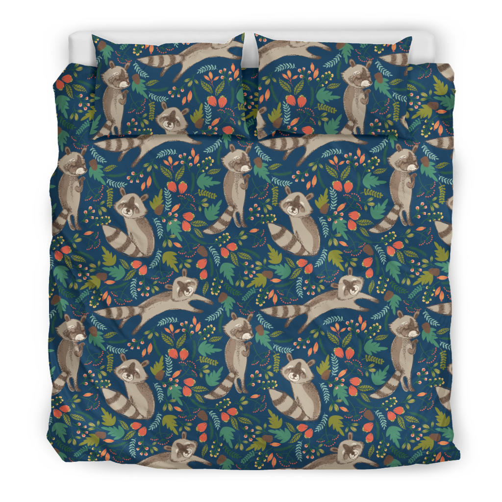 Raccoon tropical leaves pattern Bedding Set is a uniqued design and limited item. It made to order, hand printed, and sewn with love in our factory.