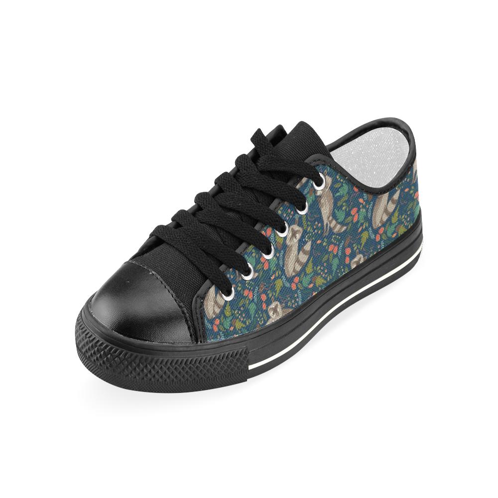 Raccoon tropical leaves pattern Kids' Boys' Girls' Low Top Canvas Shoes Black