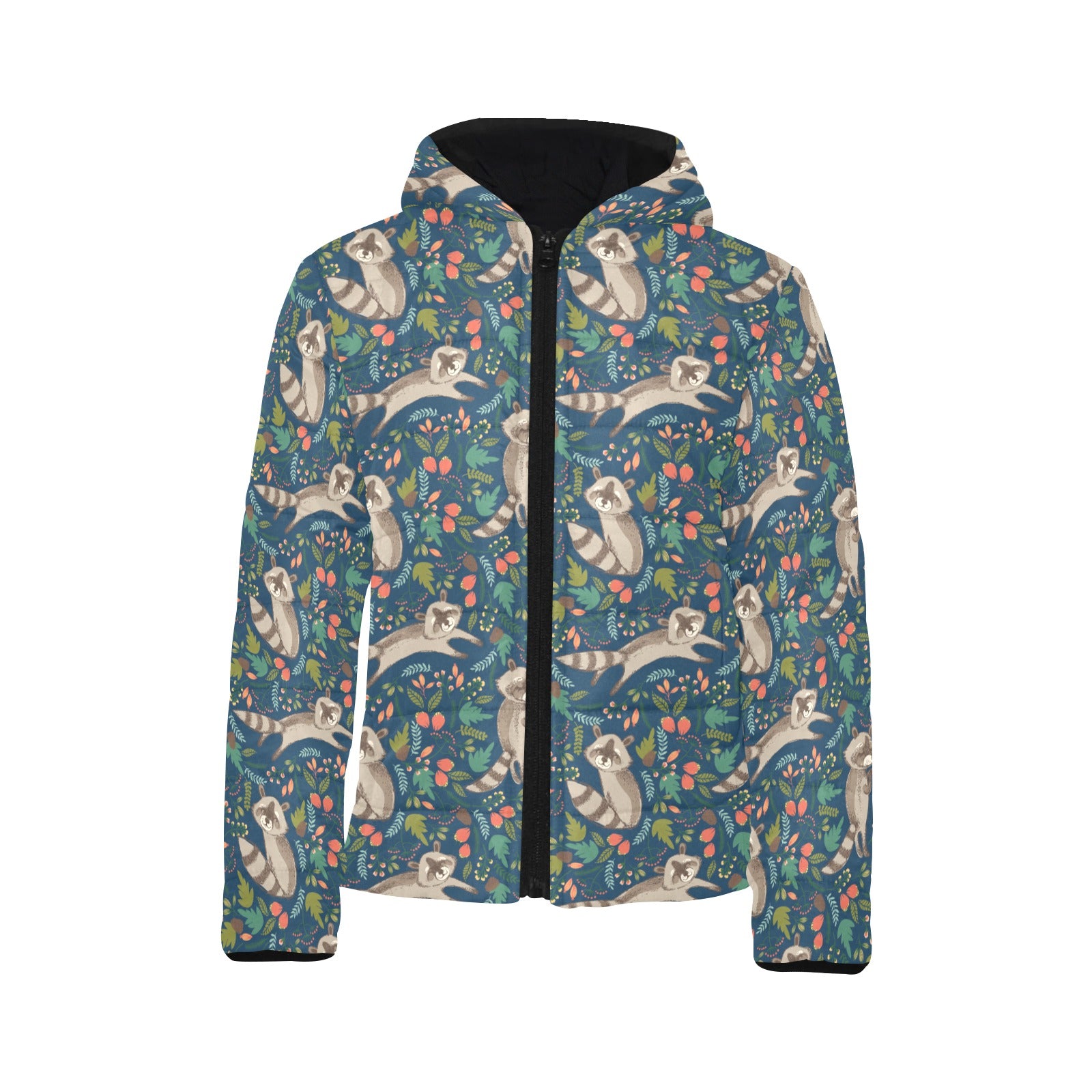 Raccoon tropical leaves pattern Kids' Boys' Girls' Padded Hooded Jacket