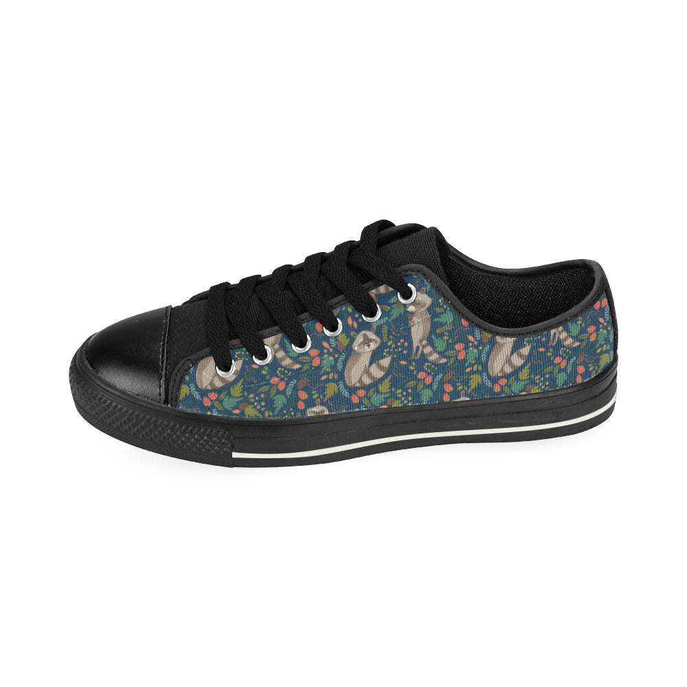 Raccoon tropical leaves pattern Men's Low Top Canvas Shoes Black