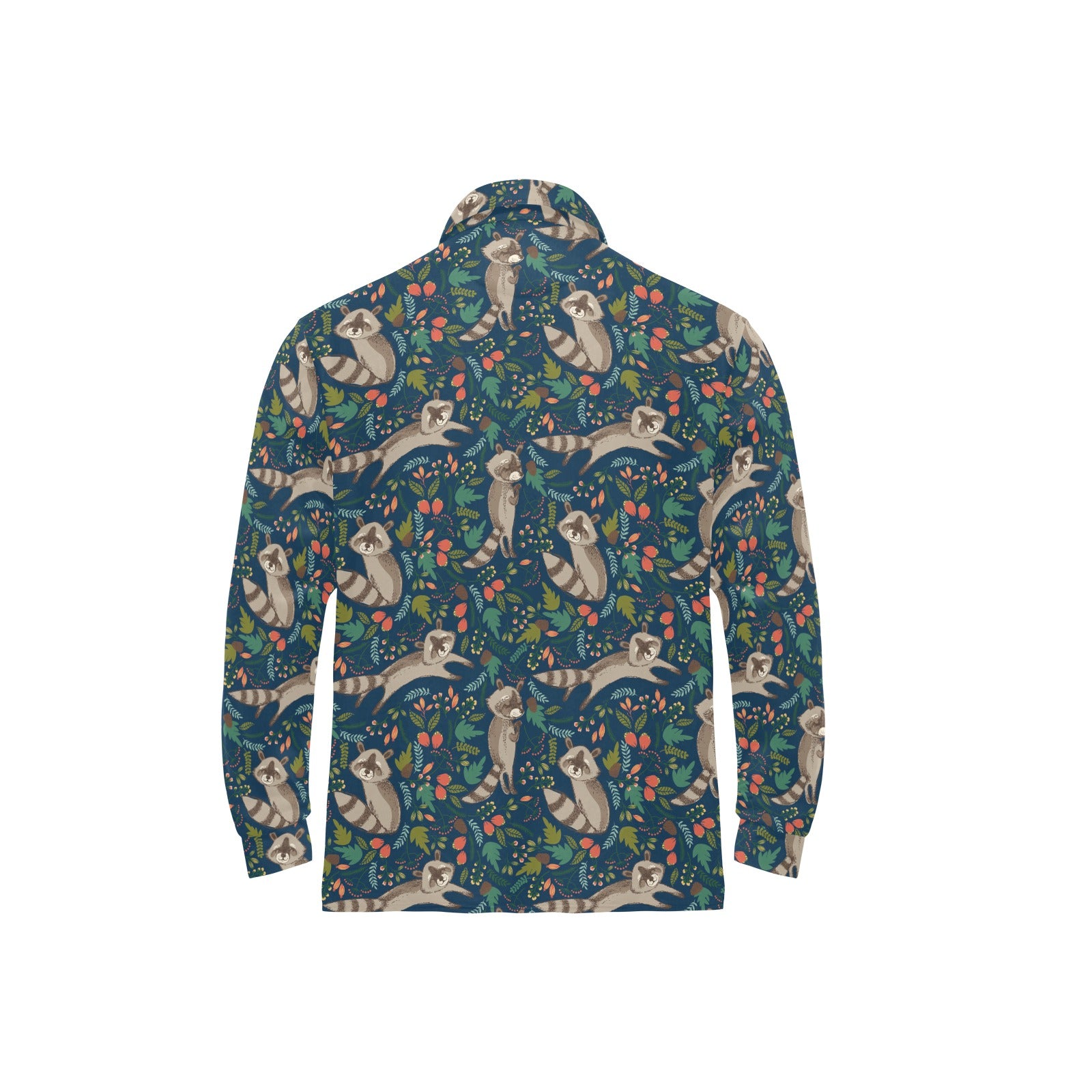 Raccoon tropical leaves pattern Men's Long Sleeve Polo Shirt