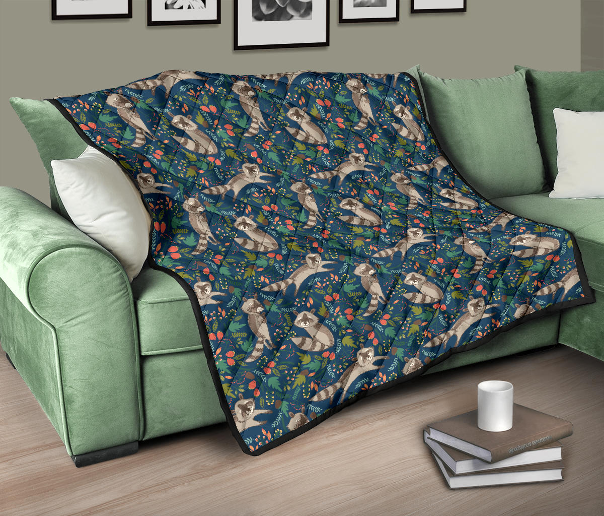Raccoon Tropical Leaves Pattern Premium Quilt is a uniqued design and limited item. It made to order, hand printed, and sewn with love in our factory.