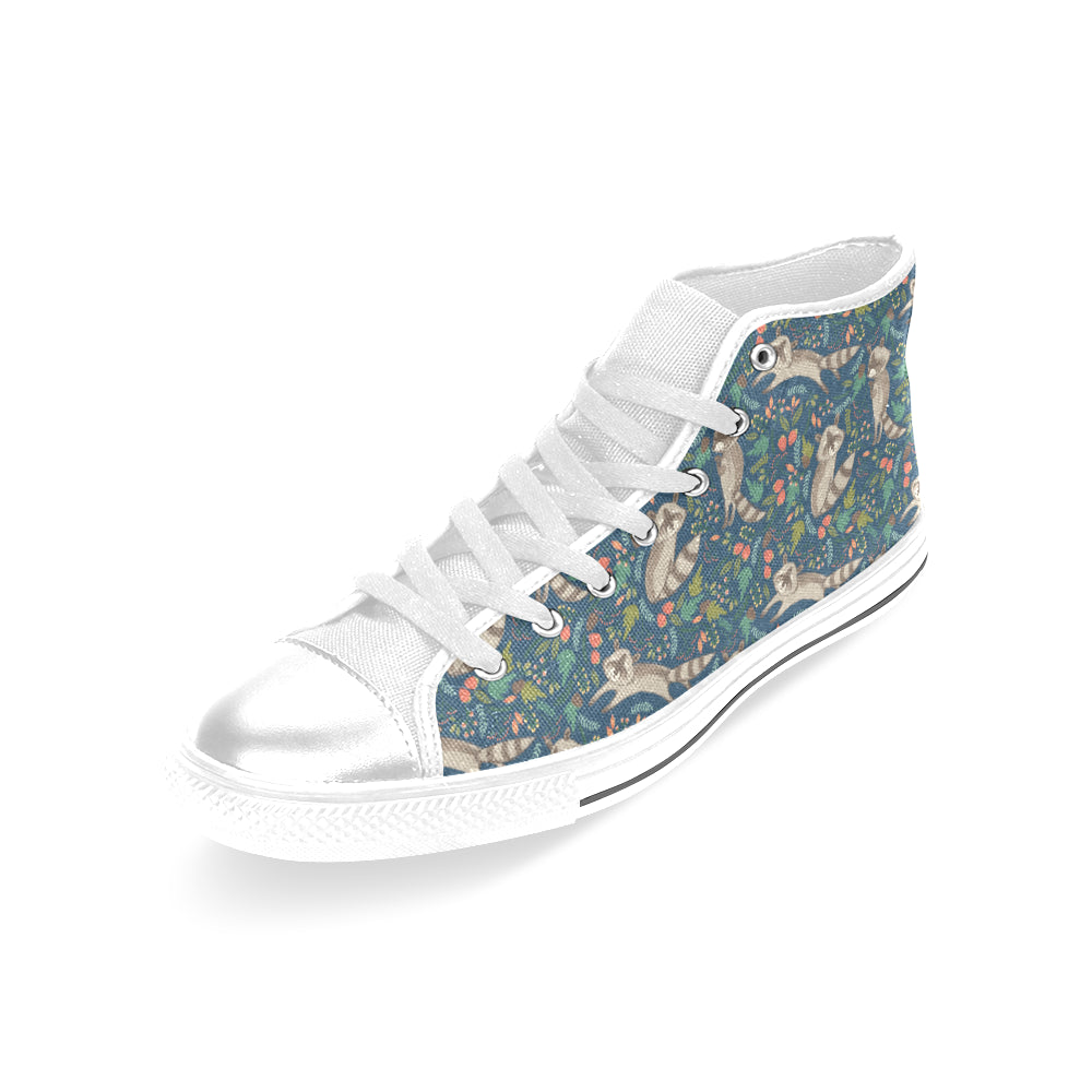 Raccoon tropical leaves pattern Women's High Top Canvas Shoes White