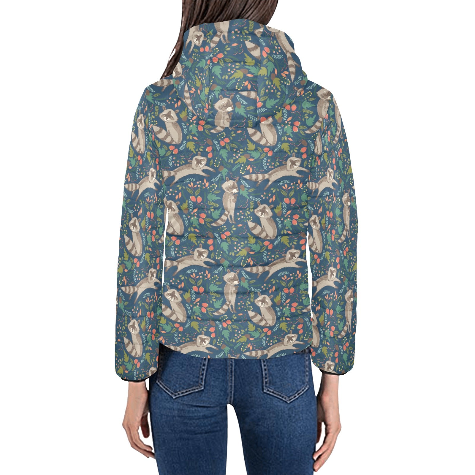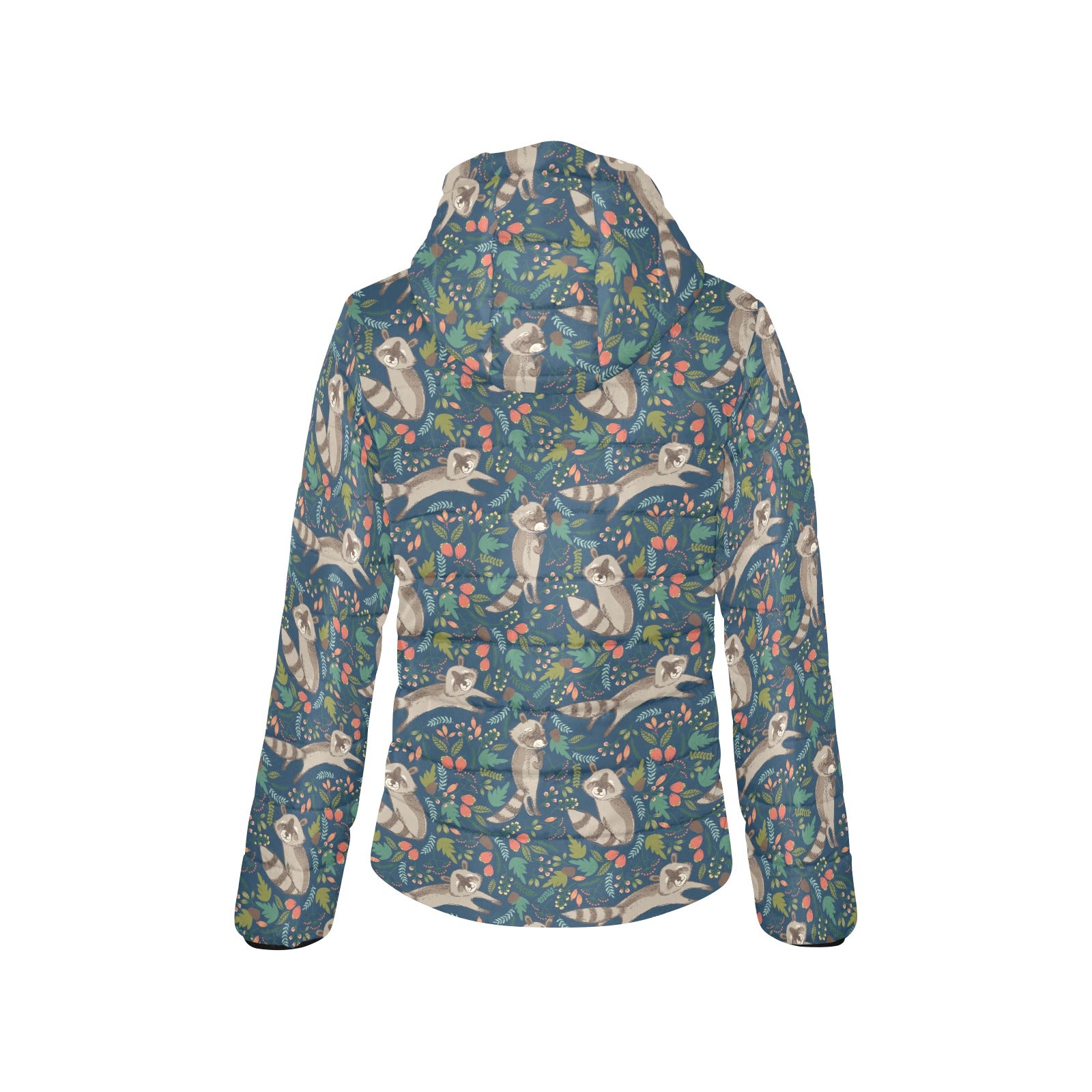 Raccoon tropical leaves pattern Women's Padded Hooded Jacket