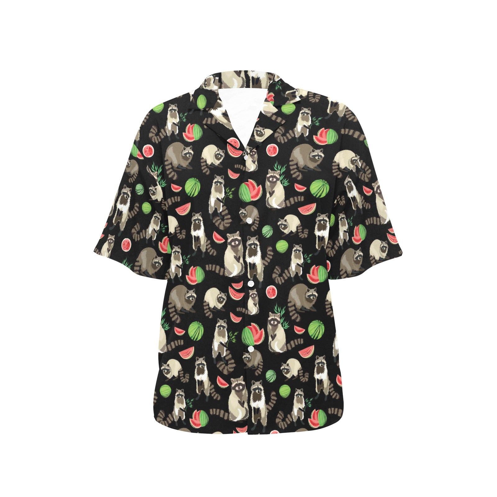 Raccoon watermelon pattern Women's All Over Print Hawaiian Shirt