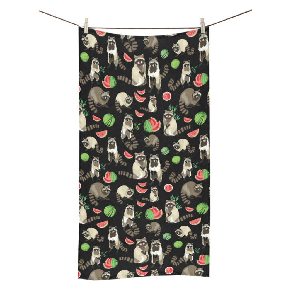 Raccoon watermelon pattern Bath Towel 30"x56" is a uniqued design and limited item. It made to order, hand printed, and sewn with love in our factory.