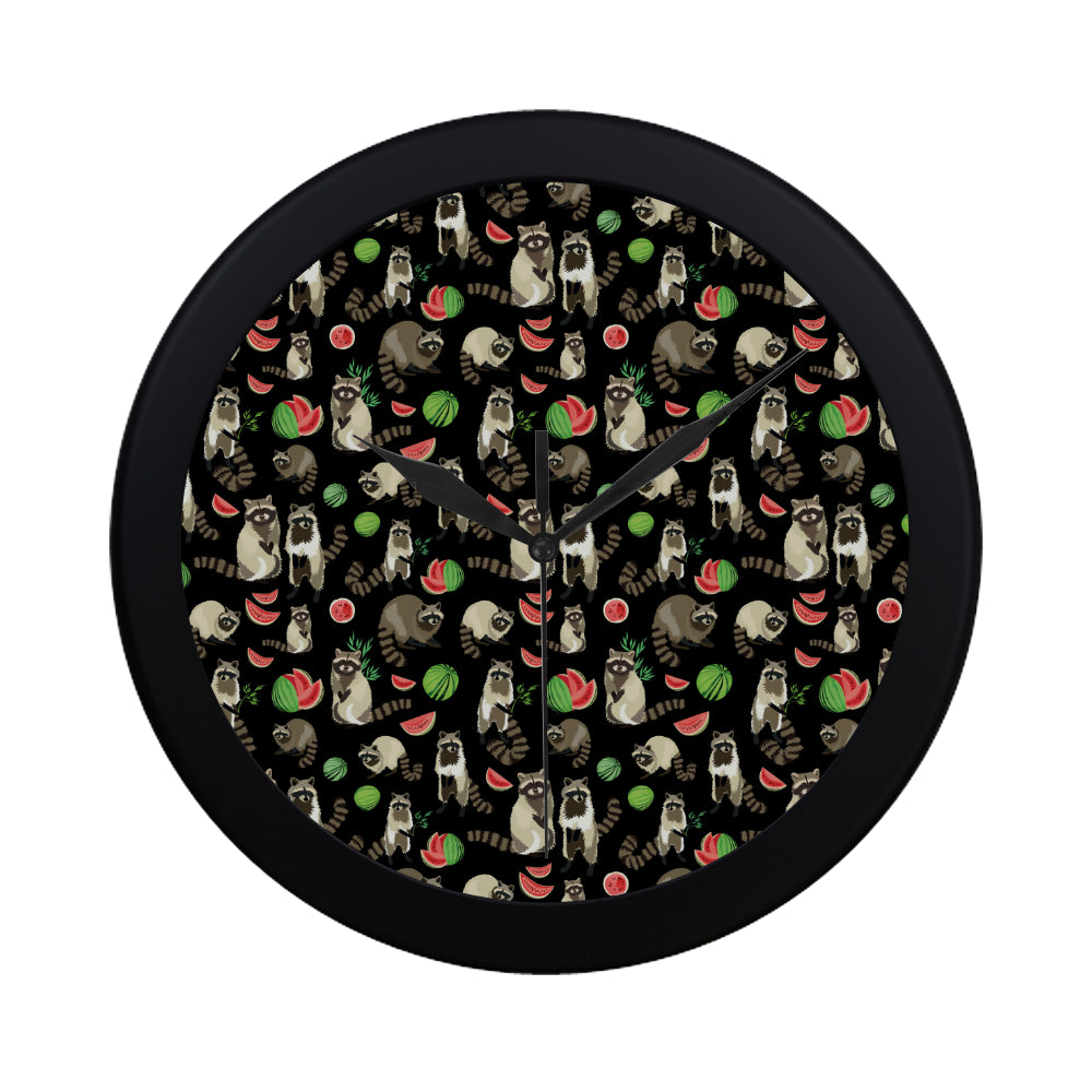 Raccoon watermelon pattern Elegant Black Wall Clock is a uniqued design and limited item. It made to order, hand printed, and sewn with love in our factory.