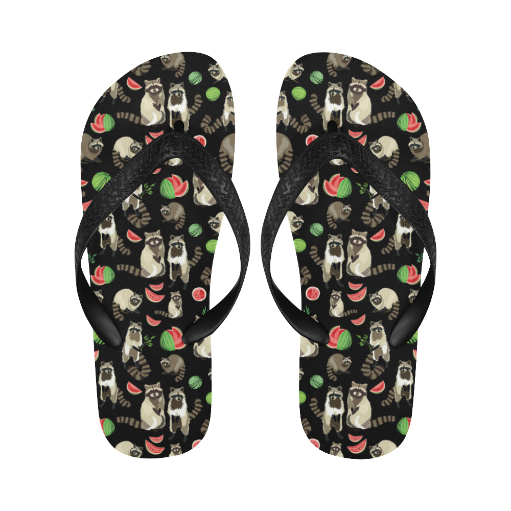 Raccoon watermelon pattern Unisex Flip Flops is a uniqued design and limited item. It made to order, hand printed, and sewn with love in our factory.