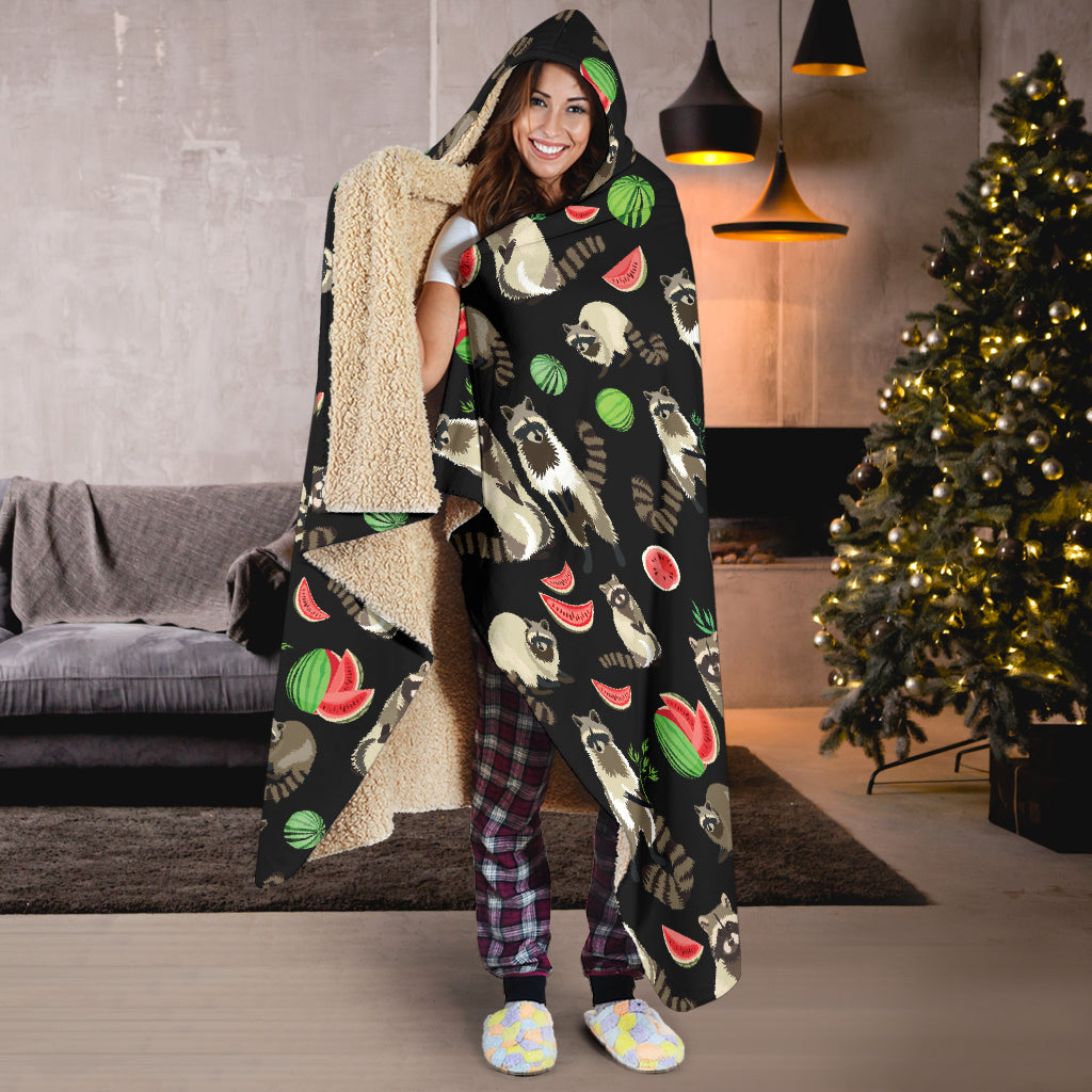 Raccoon watermelon pattern Hooded Blanket are custom-made-to-order and handcrafted to the highest quality standards.