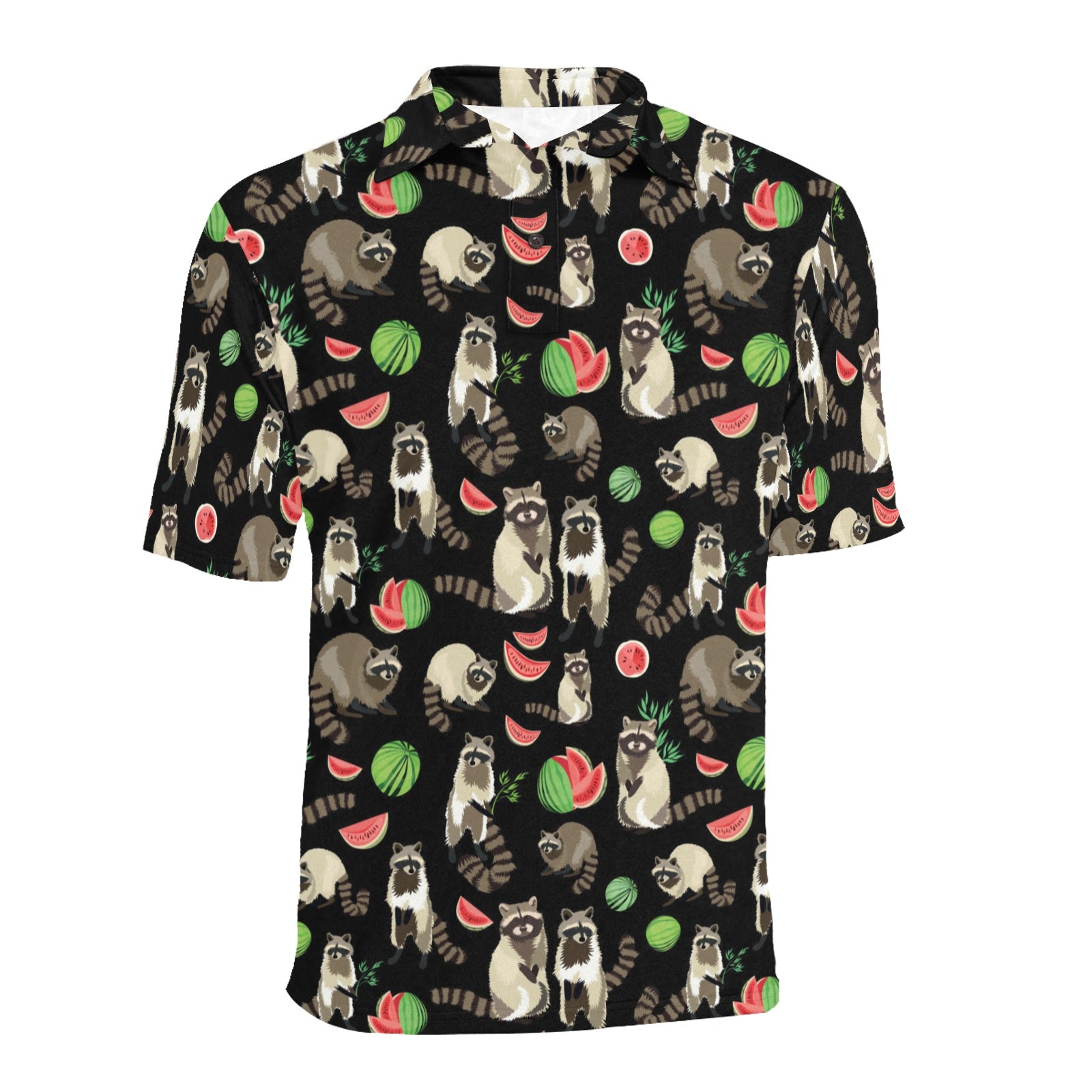 Raccoon watermelon pattern Men's All Over Print Polo Shirt