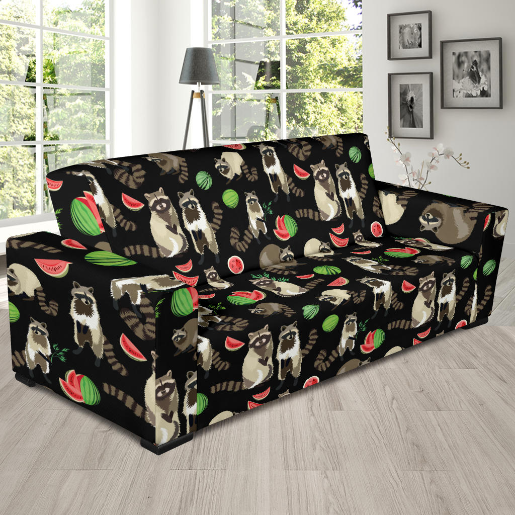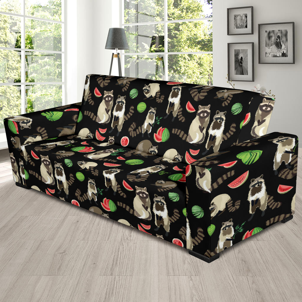 Raccoon watermelon pattern Sofa Slipcover is a uniqued design and limited item. It made to order, hand printed, and sewn with love in our factory.