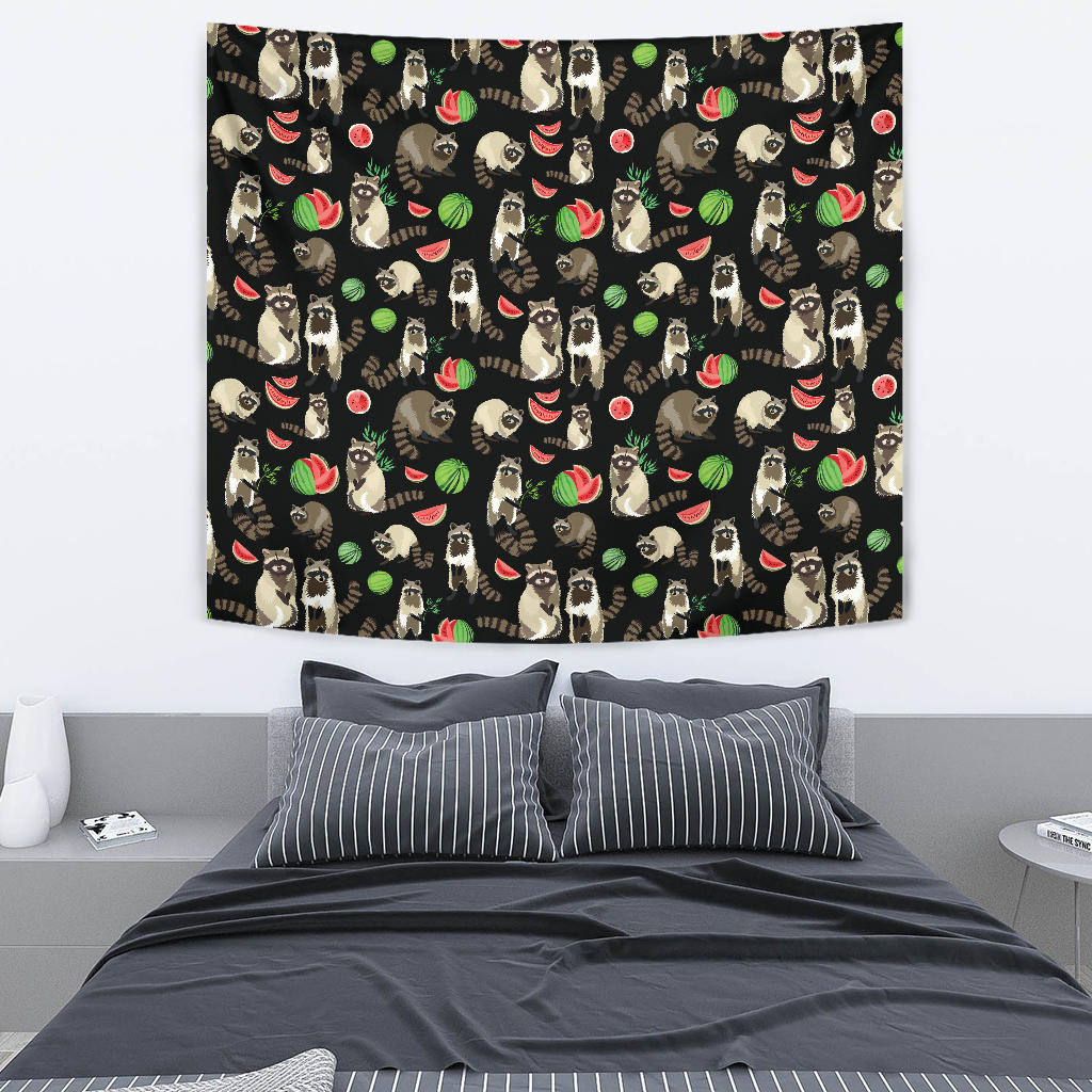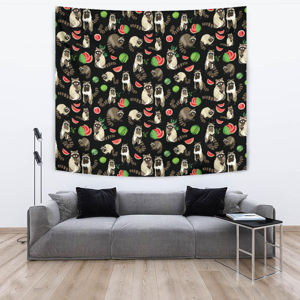 Raccoon watermelon pattern Tapestry is a uniqued design and limited item. It made to order, hand printed, and sewn with love in our factory.