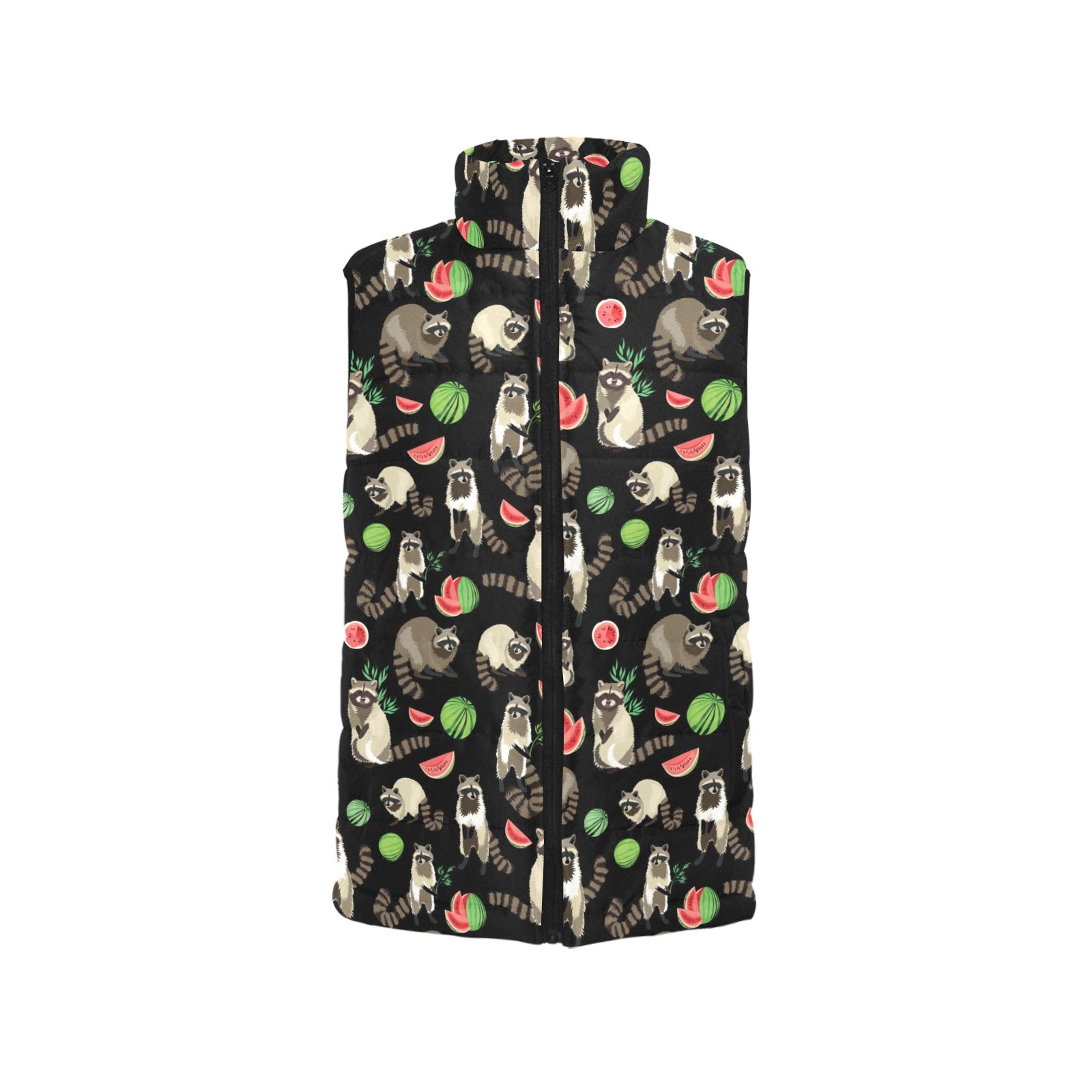Raccoon watermelon pattern Women's Padded Vest